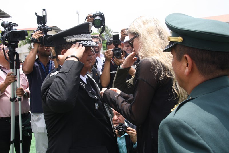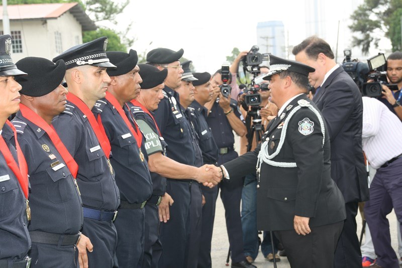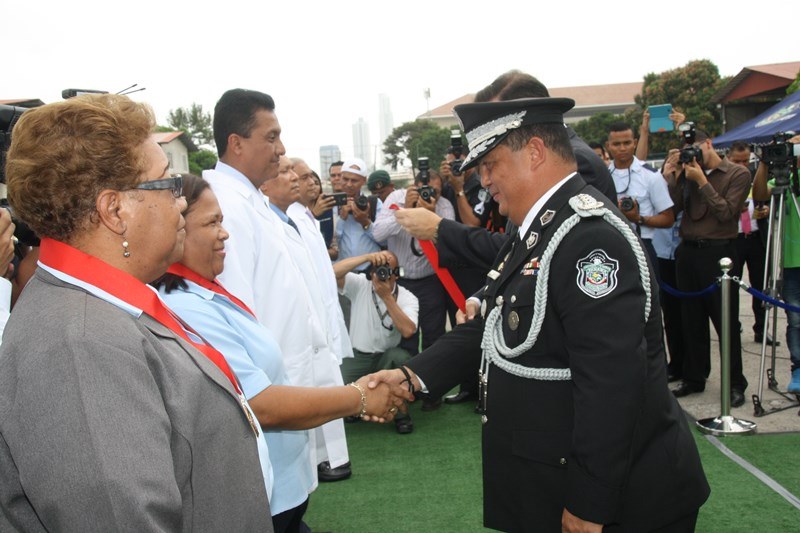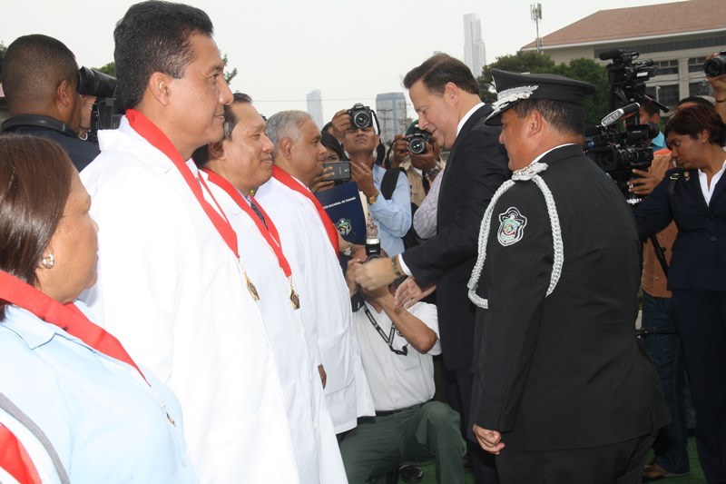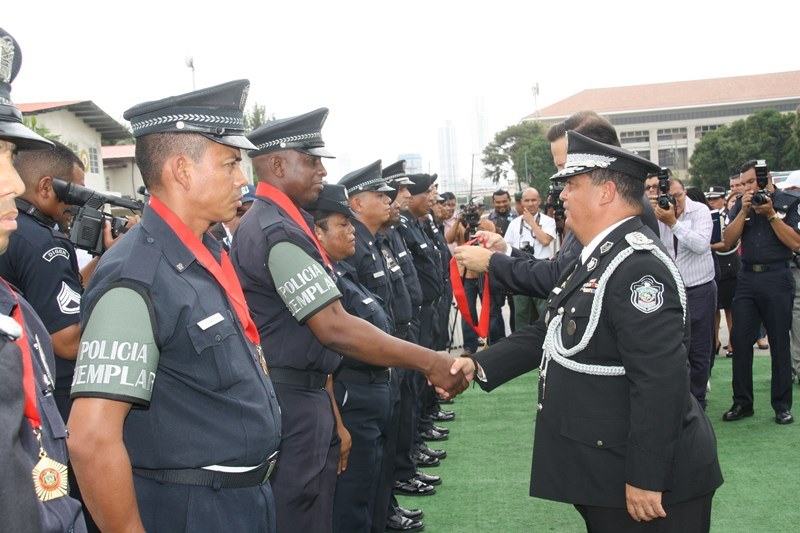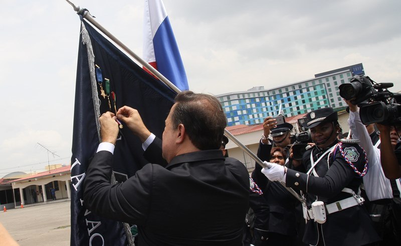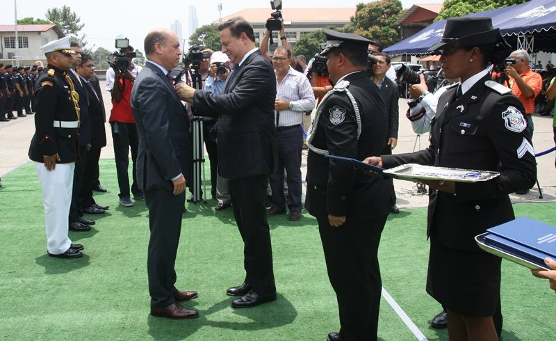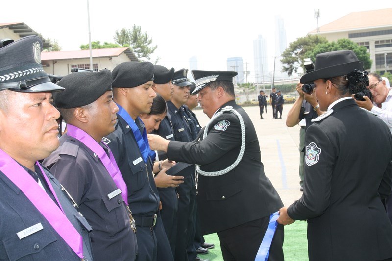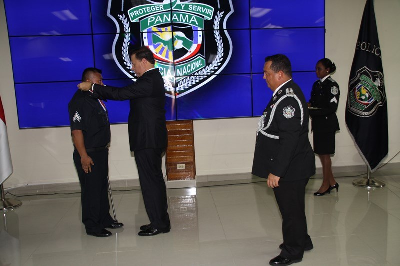 Unos 78 uniformados fueron condecorados con la medalla al "Servicio Distinguido", "Medalla al Mérito", "Medalla al Valor" y "Medalla al Sacrificio", en un justo reconocimiento durante la ceremonia realizada en la sede de la Policía Nacional, ubicada en el corregimiento de Ancón, en homenaje al Día del Policía. En este significado acto estuvo presente el Presidente de la República, Juan Carlos Varela quien en un emotivo discurso destacó la loable labor que realizan las unidades de la Policía Nacional a favor del país. "Felicito a este grupo de policías por tener siempre presente los valores que forman parte de la doctrina policial, además de ser ejemplo para al resto de sus compañeros y de la comunidad" destacó el Mandatario de la República. El Presidente resaltó que la disminución de los homicidios en los 4 primeros meses del año 2015 de los homicidios es el resultado de la unión existente entre los estamentos de seguridad. Igualmente, aprovechó la ceremonia para anunciar la creación del proyecto social “Fuerza de Esperanza”, que unirá a los estamentos de seguridad en la construcción de mejores y nuevas estructuras educativas a nivel nacional. En tanto, el ministro de Seguridad Pública, Rodolfo Aguilera Franceschi dijo que los policías son como “héroes silenciosos”, quienes realizan un trabajo extraordinario, que muchas veces pasan desapercibido, por lo que felicitó al Director de la Policía Nacional, por organizar este evento. El Director General de la Policía Nacional, Omar Pinzón Marín expresó que estos reconocimientos traen consigo un nivel distinto de responsabilidad, además de nuevas exigencias que deben encarar con renovada disposición profesional. “Este acto de condecoración es más que merecido, debe ser reconocido por sus superiores y la Patria”, destacó Pinzón. En la imposición de medallas fueron distinguidos uniformados de diferentes dependencias de la Policía Nacional y miembros del Directorio Policial. Propicio fue el momento, para hacerles entrega de medallas al Ministro de Seguridad Pública y directores de las diferentes entidades de seguridad, por sus aportes y trayectoria. Así mismo, como un homenaje especial, la embajadora de Colombia en Panamá, Gina Benedetti condecoró al Director General de la Policía Nacional Omar Ariel Pinzón Marín con la medalla Al Servicio Distinguido, en representación de su homologo, el Director General de la Policía Nacional colombiana, Rodolfo Palomino López. En esta ceremonia fueron condecorados con medallas “Al Mérito” y “Al Valor” a tres unidades policiales que producto de la labor realizada, quedaron discapacitados. Esta ceremonia que forma parte de las actividades en celebración del 78 aniversario del Día del Policía tiene como objetivo fortalecer el sentido de permanencia, respeto y amor por la profesión policial, que más que servir es entrega; además de convertirse en referencia a las futuras generaciones de uniformados que en su momento continuaran este importante legado. |