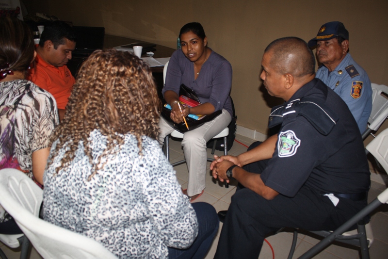 Unidades de la 2da Zona Policial, participaron de un taller del Plan Integral de la Prevención de la Violencia contra las mujeres en Centroamérica, dirigido a autoridades e instituciones en el distrito de La Pintada. El taller llevado a cabo en la Alcaldía de La Pintada por la expositora Nelva Arauz, abogada, consultora en trata y femicidio del Instituto Nacional de la Mujer. Arauz expuso sobre las experiencias de víctimas de violencia, derechos humanos y en el ámbito de la educación. Manifestó que el rol de la Policía Nacional, es muy importante porque son el primer interviniente en el caso de violencia contra las mujeres, donde debe haber una atención y actuación en situaciones, de aquellos casos detectados y el seguimientos de los mismos. Además recalco la contribución desde la Policía Nacional a la sensibilización de la población en general sobre este problema. El teniente Mario Ovalle, exhortó a los presentes de llevar el mensaje a las comunidades de denunciar el delito de violencia. Dijo que la Policía Nacional, trabaja en el reforzamiento en docencias del tema en escuelas, barrios, en la comunidad entera por una mejor calidad de vida en seguridad y prevención de nosotros mismos". |