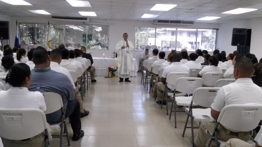 “Porque la palabra de Dios es viva y eficaz, y más penetrante que toda espada de dos filos…” Hebreos 4:12. Unidades de la Dirección de Investigación Judicial (DIJ) recibieron una mañana llena de reflexión y bendición, durante una misa celebrada en su sede de Ancón, con la participación del capellán de la Policía Nacional Edgar Flores. Fortalecer y mantener los lazos de amor en la familia y reconocer que cada paso que dan depende de la gracia de Dios, fue parte del mensaje compartido por el padre Flores. “No descuidemos nuestro hogar”, recomendó. La DIJ programa cada mes una misa, para que cada una de las unidades, que salen día a día a proteger y servir a la ciudadanía, tenga la protección y guía del altísimo. El momento siempre es propicio para felicitar a las unidades por su labor y exhortarle a que continúen trabajando en pro de la seguridad del país. En esta ocasión, el Director de Investigación Judicial, comisionado Marcos Córdoba hizo entrega de certificados de reconocimiento a Erick Miranda de la Distribuidora Plidel y a Lorenzo Benzi de la imprenta Big Solution, por su apoyo a la Policía Nacional. |