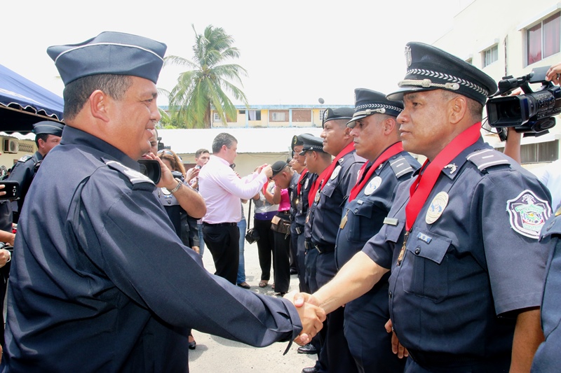 Trece unidades de la Zona Policial de la provincia de Colón fueron condecorados, mientras que 110 recibieron premios por su destacada labor, como parte de la conmemoración del “Día de Policía” que se celebró en la Costa Atlántica. En el acto estuvo presente el Director General de Policía Nacional, Omar Ariel Pinzón Marín, realzando en su intervención el trabajo que a diario realizan las unidades policiales en esta región del país. “Para el Director General es de suma importancia trabajar en la motivación, en la moral, en el bienestar de cada miembro de la institución” expresó el jefe policial. Exhortó a los uniformados a ser multiplicadores y ejes que impulsen hacia adelante el buen camino de esta noble institución, “ustedes han dejado en alto el nombre de esta zona bajando notablemente los crímenes de mayor impacto”. El jefe policial felicitó al Teniente Santander Torres del Cid escogido “Policía Ejemplar” a quien igualmente se le entregó varios premios de parte de los compañeros de la zona policial. El acto fue preciso para que el Director Pinzón Marín condecorara al jefe de la zona colonense, el comisionado Carlos Rumbo, con la medalla de servicio distinguido. “Nosotros nos honramos en condecorar a Carlos Rumbo quien junto a las unidades ha sabido trabajar para mejorar el ambiente y el clima laboral, a la vez trabajar con toda la comunidad, ganarse sus corazones” destacó el Director al tiempo que le colocaba la medalla a Rumbo. El Comisionado Carlos Rumbo agradeció al Director General por la confianza depositada al trasladarlo a esa provincia y las unidades por el trabajo que diariamente realizan en bien de la comunidad. |