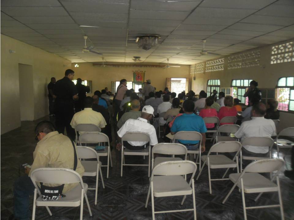Unidades de la Oficina de Seguridad Ciudadana de la Zona Policial de Bocas del Toro, realizaron una reunión de rendición de cuentas en la que participaron todos los miembros coordinadores de los diferentes barrios y comunidades organizados en "Vecinos Vigilantes". En el acto estuvieron presentes todos los jefes de las diferentes áreas policiales y fue presidida por el comisionado Cesar Herrera en representación del comisionado Aristides Hassan Jefe de la 1º Zona Policial. Periódicamente la Policía Nacional realiza estas reuniones para informarles a todos los miembros de la programas de seguridad ciudadana sobre las actividades y operativos que realizan para minimizar los actos delictivos en sus barrios. |
