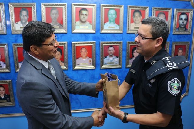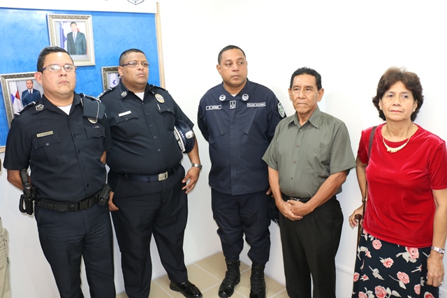Una galería de Directores de Recursos Humanos de la Policía Nacional, fue inaugurada este miércoles 6 de mayo en el Departamento de Administración de Documentos en la sede principal de Ancón. El capellán de la Institución, Edgardo Flores brindó la bendición a esta galería, mientras que en el acto estuvo presente la Secretaria General Oris Jaén, el Director de Recursos Humanos Erick Amaya, de invitados especiales como el comisionado retirado Armando Pérez, la comisionada retirada Ida de García quienes fungieron como Directores de Recursos Humanos. El Comisionado Erick Amaya, director de este Departamento, indicó que el espacio se hizo en reconocimiento a la importante labor que desarrollaron durante su gestión. Los invitados y ex miembros de este estamento de seguridad, recibieron obsequios institucionales por parte de la Secretaria General Oris Jaén y el Comisionado Erick Amaya, en muestra de sus funciones. |