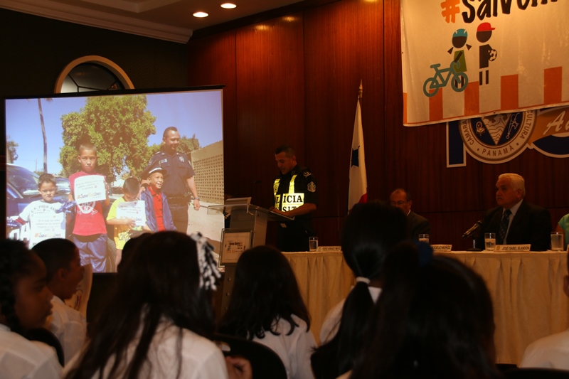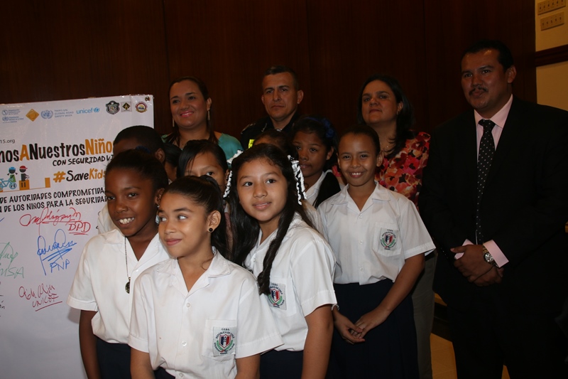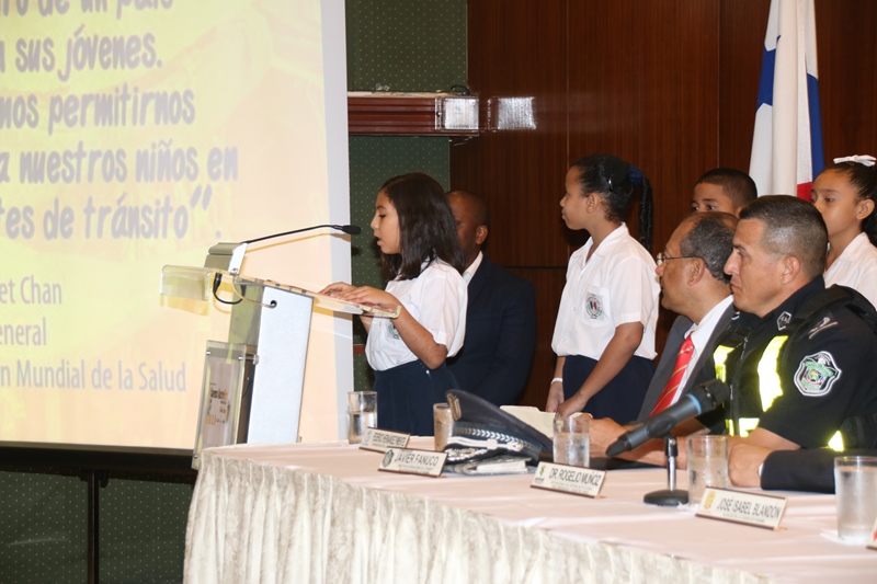 Bajo el eslogan "Salvemosa Nuestros Niños" la Policía Nacional junto a otras entidades gubernamentales y organizaciones internacionales, como la Unicef y la Organización Mundial de la Salud (OMS), celebran la "Semana de la Seguridad Vial" que tiene como objetivo prevenir accidentes de tránsito. Cada año a nivel mundial, mueren 186 mil 300 niños en accidentes de tránsito, lo que supone más de 500 niños por día, por ello la necesidad de reforzar los programas de seguridad vial, entre otras acciones. En su intervención durante la conferencia de prensa, el comisionado y jefe de la Dirección Nacional de Operaciones de Tránsito de la Policía Nacional, Javier Fanuco mencionó la necesidad de unir esfuerzos como medida eficaz para evitar que en Panamá aumenten los casos de niños y jóvenes, víctimas de accidentes. “La Policía Nacional continuará llevando a las escuelas y comunidades los programas de educación vial que orientan a los niños y a sus padres sobre las recomendaciones que deben seguir en las calles u otros lugares donde pueden estar expuestos a estos peligros”, dijo Fanuco, quien explicó que en el primer trimestre del año se registraron 122 víctimas, de estas 20 eran niños y jóvenes menores de 18 años. Por su parte, los estudiantes de la escuela República de Chile leyeron la Declaración de Niños para La Seguridad Vial, siendo entregada a las autoridades presentes, quienes la firmaron en un acto simbólico, como compromiso de tener carreteras y calles más seguras. Al culminar este evento, el doctor Rogelio muñoz, jefe nacional del Sistema Institucional de Salud para Emergencias del Ministerio de Salud, manifestó la complacencia de observar la disposición de todas las instituciones en trabajar conjuntamente para preservar el recurso humano que son los niños, futuros profesionales del país. La OMS, Unicef, Organización Panamericana de la Salud, Policía Nacional, la Alcaldía del distrito capital, Autoridad de Tránsito y Transporte Terrestre, la Caja de Seguro Social, el Ministerio de Salud, el Despacho de la Primera Dama, entre otros; implementaran diversas iniciativas que incluyen estrategias que involucren a la ciudadanía. Conducir en el los límites de velocidad permitidos, utilizar el paso peatonal, usar el cinturón de seguridad, colocarle a los niños el casco de seguridad cuando viajen en motos y scooters, son simples acciones que pueden salvar la vida.
