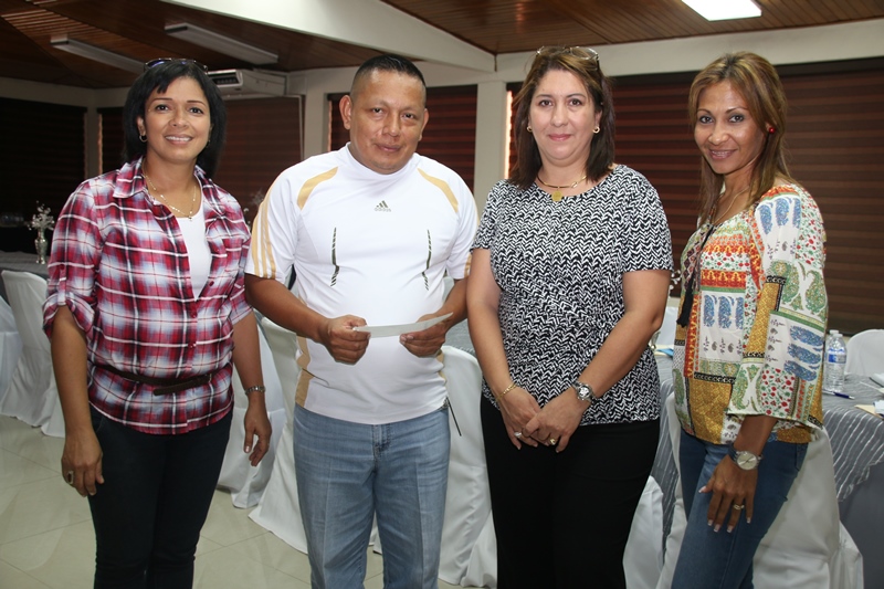 Tres miembros de la Policía Nacional recibieron de manos de las Damas A.S.U.L. un aporte económico para ayudar a sufragar gastos personales que se les presenta.