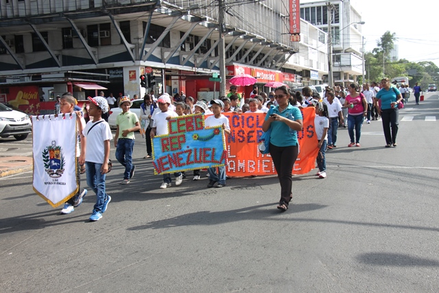 La Policía Ecológica participó de una desfile escolar desde el parque Belisario Porras hasta le sede de la Lotería Nacional de Beneficencia en la mañana de este martes 13 de mayo, conmemorando la semana del Reciclaje. La Avenida Perú, fue escenario para que más de 9 colegios primarios, organizaciones no gubernamentales, fundaciones y la banda de la Policía Nacional recorrieran esta vía, donde los alumnos mostraban sombreros, trajes y además confecciones con material reciclado. Constantemente las unidades de la Policía Ecológica dictan charlas en colegios primarios y secundarios a nivel nacional, tocando y concienciando sobre la importancia del reciclaje y el cuidado del medio ambiente. En la sede de la Lotería Nacional de Beneficencia finalizó la actividad con la participaron algunas instituciones con sus respectivos stand, juegos inflables, la participación de los personajes Polito y Polita de la Policía Nacional, con los cuales se divirtieron los menores que asistentes. |