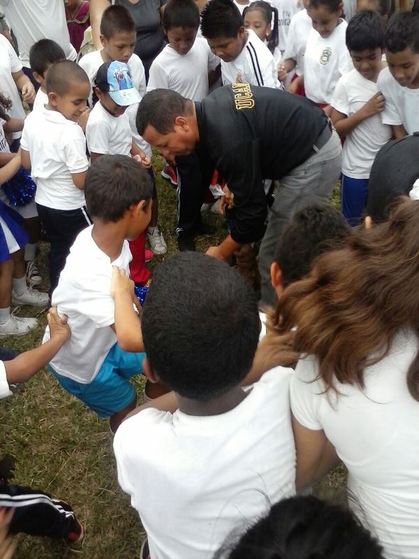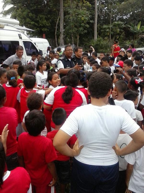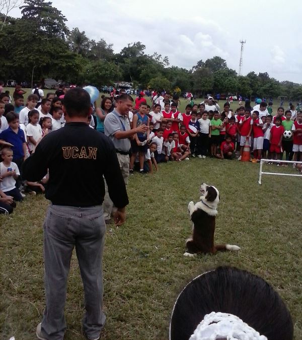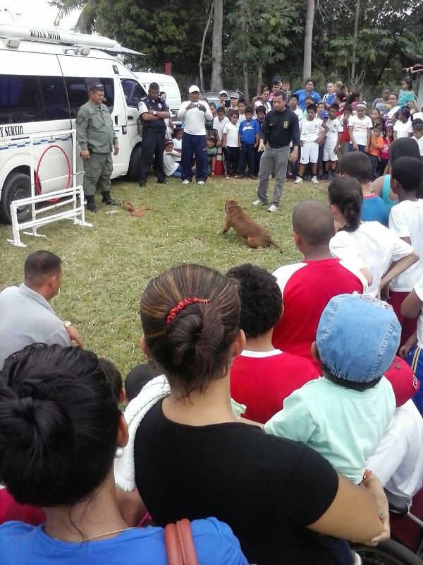 Unidades de la 4ta. zona policial de Chiriquí, participaron de un encuentro juvenil deportivo, realizado en la escuela Margarita Bermann de la comunidad de Chirigagua, corregimiento de San Pablo, distrito de David. En este encuentro participaron 14 escuelas del área Metro Oeste, con la finalidad de tener un acercamiento con los niños de los diferentes centros educativos, llevando un mensaje positivo y orientándolos con los programas gratuitos que mantiene la Policía Nacional. Los estudiantes y padres de familia recibieron charlas por parte de las unidades de la Policía de la Niñez y Adolescencia y del departamento de Seguridad Ciudadana. El Grupo Juvenil Canino de esta zona policial, al mando del Sgto.1ro. Héctor García, deleitaron a todos los presentes que participaron de esta actividad. Más de 500 estudiantes, educadores y la comunidad disfrutaron de estas presentaciones y aplaudieron las diferentes demostraciones como son de obediencia básica avanzada, trucos, pistas de agilidad y habilidades que tienen estas mascotas. |