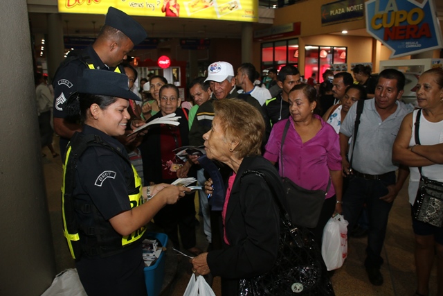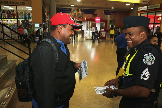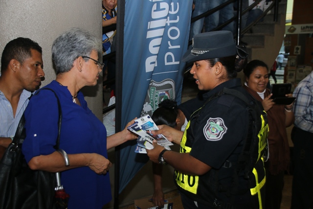 Con la finalidad de llevar el mensaje de prevención y seguridad, por un Panamá seguro, la Policía Nacional, realizó este jueves 21 de mayo, una tarde de volanteo en las inmediaciones de la Terminal Nacional de Albrook. Denominado “Tu Policía en tu comunidad”, este evento fue amenizado con las melodías contagiosas y características de la Banda de Concierto de esta institución. Por otra parte Polito cautivó a los presentes con sus bailes y abrazos afectuosos, por lo que todos deseaban tomarse una foto de recuerdo con él. Niños, jóvenes y adultos fueron llegando poco a poco para ser parte de esta actividad informativa, que contemplaba en sus impresos consejos preventivos de seguridad y de tránsito.