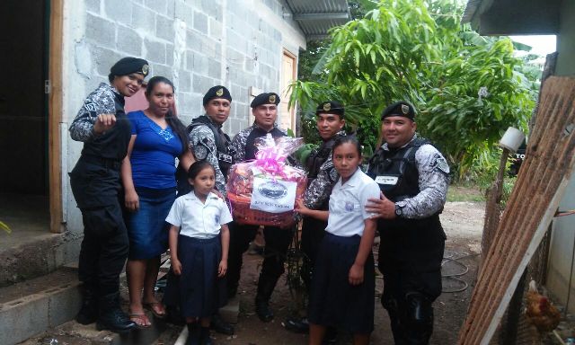 Unidades del Servicio Policial Motorizado "Linces” de Veraguas, realizaron una labor social, consistente en la entrega de una canasta de comida a la señora Juana Martínez en la Comunidad de Arenilla del distrito de Atalaya. La señora Juana es madre de tres hijos, oriunda de la comunidad de Quebrada de Agua, área comarcal y vive en condiciones precarias, no cuenta con una vivienda digna para ofrecerles a sus hijos. La Zona de Policía de Veraguas, a través de la Policía Nacional gestiona la construcción de una vivienda digna para mejorar la calidad de vida de esta humilde familia. |