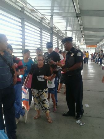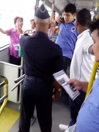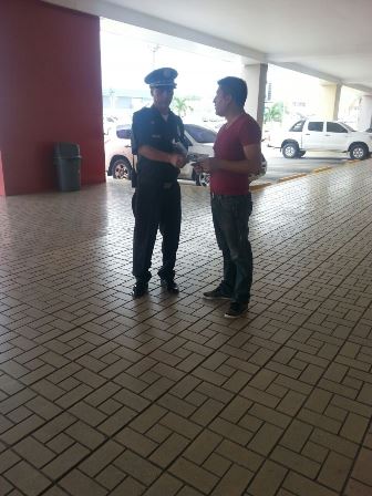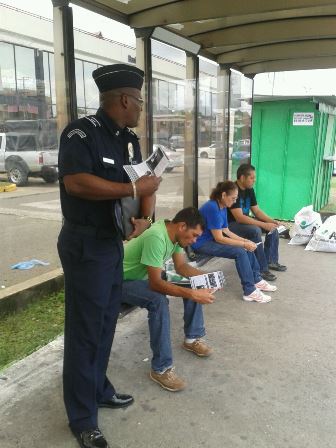 Una jornada de volanteo se realizó en diferentes comercios del área Este de la República de Panamá, con el fin de reclutar jóvenes para que se inscriban a la Policía Nacional, además recomendaciones para evitar ser víctimas de los delincuentes. Las volantes tenían mensajes sobre medidas de seguridad, beneficios que ofrece la entidad a quienes ingresan en ella, igualmente medidas para que los jóvenes se alejen de pandillas. La jornada fue de la complacencia de quienes se encontraban en el lugar, quienes intercambiaron opiniones con los uniformados y realizaron preguntas en torno a la seguridad y el ingreso a la fila policial. Estas acciones de prevención y orientación es un esfuerzo adicional que realiza la Policía Nacional en los centros comerciales, escuelas, zonas pagas, entidades públicas de Panamá, con la finalidad de ayudar a los ciudadanos en la adopción de medidas de seguridad básicas. |