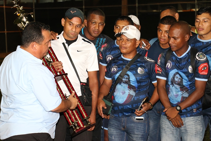 Con la energía de los equipos finalistas en encuentros reñidos por llevarse la victoria, culminó la Copa “Omar Ariel Pinzón Marín” en las inmediaciones de la Cancha Sintética de la sede principal en Ancón. Con la alegría, reflejados en saltos y abrazos la Octava Zona Policial se coronó con la victoria en la categoría abierta de esta final futbolística. Por otra parte, las femeninas de servicio en la Dirección Nacional de Bienestar Policial (DIBIPOL) se lucieron en la verde, siendo las triunfadoras de esta categoría. Los veteranos del fútbol dejaron por sentado que a pesar de los años, las condiciones se mantienen en todo momento y ofrecieron a los espectadores un partido lleno de muchas emociones. En medio de la celebración, el Director General de la Policía Nacional, Omar Ariel Pinzón Marín se dirigió a los equipos y a las unidades quienes participaron de este encuentro deportivo. “Gracias por la iniciativa de nombrar este evento con mi nombre y les felicito, como también les exhorto a seguir dando lo mejor de cada uno de ustedes en beneficio de este país, unidos como equipo, como familia, en pro de una sola misión, proteger y servir”, manifestó Pinzón. Finalmente con la entrega de trofeos a los jugadores destacados y premios a los diferentes equipos, culminó este evento deportivo que llevaba por nombre "Omar Ariel Pinzón Marín".