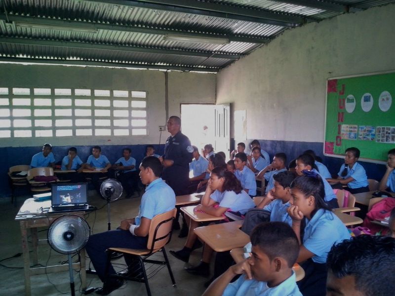 Estudiantes del Centro Educativo Ernesto Osorio Gómez, ubicado en la comunidad de Nuestro Amo en el distrito de Ola, recibieron charla de orientación en temas relacionados con el bullying, redes sociales y subcultura, por unidades del departamento de Seguridad Ciudadana y Niñez y Adolescencia de la 2da Zona Policial. El Teniente Mario Ovalle enfatizó sobre la subcultura como objetivo fundamental de estas capacitaciones y crear conciencia en los adolescentes de los valores trasmitidos desde su hogar, principalmente el respeto. En tanto la subteniente Linded Pineda, en su intervención dijo a los estudiantes que el uso de las Redes Sociales causa un gran impacto, donde subir una foto o compartir una información en las redes sociales puede comprometer la vida a una persona. Cabe señalar que los alumnos de la citada institución educativa, escucharon con atención al personal, a la vez que aclararon dudas que tenían con relación a los temas. |