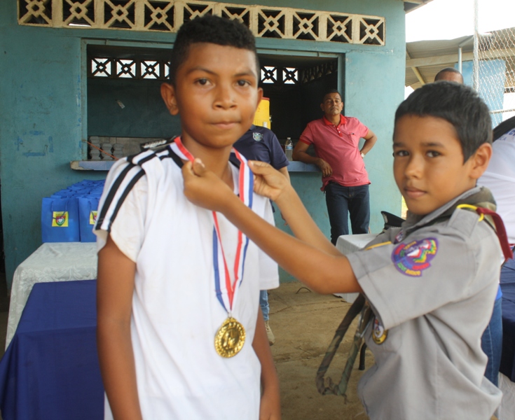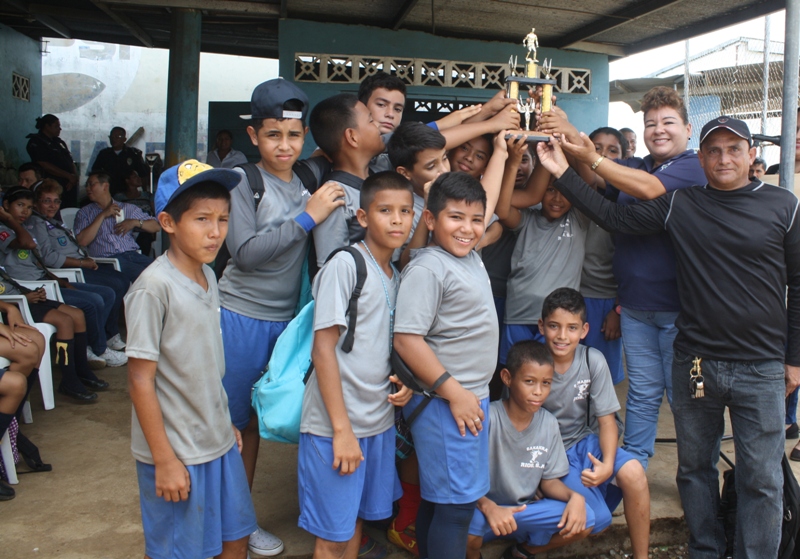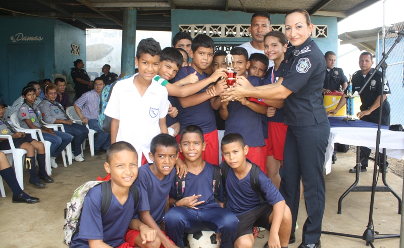 Culminó con gran éxito la liga de fútbol copa "Comisionado Abdul Ledezma" inaugurada el pasado miércoles 20 de mayo en la instalaciones la 4ta. Zona Policial de Chiriquí. El evento fue organizado por el Departamento de Seguridad Ciudadana y contó con la participación de cuatro equipos conformados por unos 100 niños de las escuelas, José María Roy, Victorio Lorenzo y Pedregal de la ciudad de David y La Estrella del distrito de Bugaba. El Sub-Comisionado Virgilio Lezcano, Esta actividad se realizó con la finalidad de reforzar los valores y tener un acercamiento con nuestra niñez. Se efectuaron dos encuentros de futbol donde la escuela de Pedregal ganó 5 a 3 a la escuela Victoriano Lorenzo, quedando como campeón. También se entregaron trofeos a los equipo de la escuela de José María Roy, quien ocupó el tercer lugar y La Estrella de Bugaba, quedando en cuarto lugar. Los señores oficiales e invitados especiales otorgaron le medallas a los estudiantes más sobresalientes de este torneo de futbol: campeón portero y goleados , espíritu de cuerpo y responsabilidad. En esta actividad estuvieron colaborando como árbitros personal juramentados y no juramentados. |