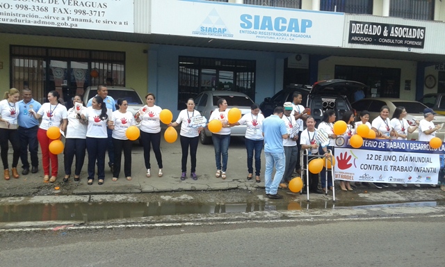 Estudiantes del Instituto Superior Policial (ISPOL), extensión Veraguas y unidades de la Zona de Policial, participaron en una cadena humana, en conmemoración al “Día Mundial contra el Trabajo Infantil”. En esta actividad también participaron personal de varias entidades, para demostrar el interés y apoyo, ya que muchos niños y niñas están inmersos en este flagelo. La cadena humana se desarrolló de 12:00 m.d. a 12:30 m.d., en los predios del Ministerio de Trabajo y Desarrollo Laboral en la provincia de Veraguas. A la actividad asistió el Comisionado Gilberto Cuevas, quien señaló que con esta acción, se busca la erradicación del trabajo infantil de niños y adolescentes en el país. |