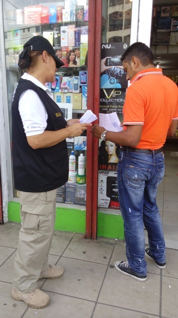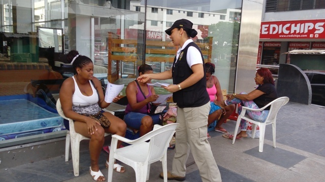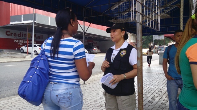 Para el Director General de la Policía Nacional Omar Ariel Pinzón Marín, es de suma importancia mantener y reforzar el acercamiento con la ciudadanía y los comerciantes, con la finalidad de concientizara la ciudadanía, de una manera dinámica, ‘puerta a puerta’, en la prevención de los delitos. Es por esto que, unidades de la Dirección de Investigación Judicial (DIJ) de la Policía Nacional iniciaron el día de ayer, sábado 13 de junio, una jornada de volanteos y orientación a la comunidad, en varias áreas de la capital sobre medidas de seguridad para evitar ser víctimas de robos, hurtos y estafas. De esta manera, como primera fase, este 13 de junio fueron visitadas las áreas comerciales de la ciudad capital ubicadas en Calidonia, La Peatonal, La Cresta, Terminal de Albrook, Multiplaza, Gran Estación y Las Colinas en San Miguelito. Hoy, domingo 14, se visitarán comercios ubicados en El Dorado, Avenida Balboa, Los Pueblos, Plaza Tocumen y La Doña en la 24 de Diciembre. Recordando que el primer anillo de seguridad es cada uno. Ayúdanos a prevenir los hechos delictivo. |