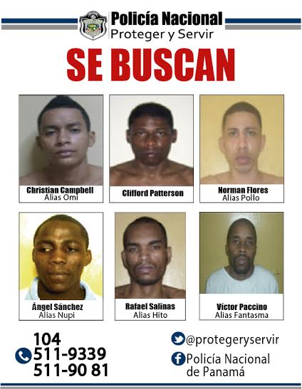 La Policía Nacional mantiene operativos en diferentes puntos para dar con la captura de los seis delincuentes que esta semana se fugaron del centro penitenciario La Joyita, en Pacora. Tras los intensos allanamientos realizados durante las últimas 24 horas, las unidades policiales ubicaron a uno de los seis delincuentes, Vito Passino Crossalde, en el Sector 3 de Pacora, barrio Los Ángeles. El sujeto condenado por homicidio, mantenía en su poder un arma de fuego dentro de una residencia. Los operativos se intensificaran en distintos puntos de la ciudad capital para dar con la recaptura de los otros cinco evadidos, implicados en delitos de homicidio y tráfico de drogas. Mientras tanto la Policía Nacional ofrece una recompensa de 10 mil dólares por cada uno de ellos y solicitan la colaboración de la comunidad, llamando a los teléfonos 104, 511-9081, 511-9339 y al 512-2222. |
