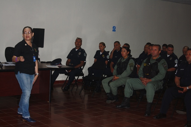 Unidades de la Oficina de Seguridad Ciudadana capacitaron a más de 45 miembros de la Sexta Zona de Policía de Herrera, en temas relacionados a los programas comunitarios que lleva adelante la Policía Nacional. La Magister Marieta Díaz, en su intervención se refirió al tratamiento que deben tener las unidades hacia la ciudadanía, tanto en operativos y retenes en las calles, con la finalidad de mejorar la relación con las personas. En la charla, se hicieron talleres prácticos sobre la relación que debe tener los policías hacia la ciudadanía. |