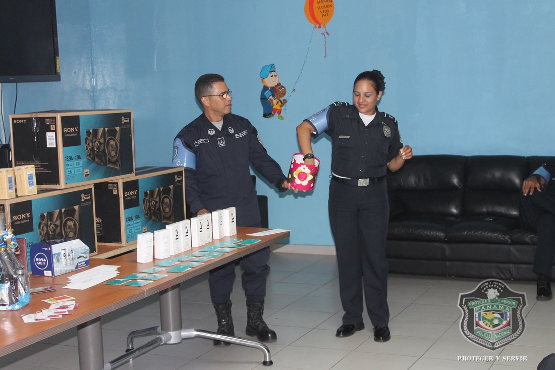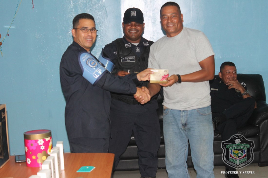 En celebración del Día del Padre, este viernes 19 de junio, las unidades que integran la Unidad Preventiva Comunitaria (UPC), adelantaron el agasajo a los papás, siendo sorprendidos con una gran celebración y diversos obsequios. Esta actividad, en la que estuvo involucrado el Departamento de Trabajo Social de la primera institución de seguridad pública de Panamá, se desarrolló en las instalaciones de la UPC en Curundú, y contó con la participación del jefe de la UPC en esta área, el Subcomisionado Luis Ortíz, quien hizo entrega de los regalos a sus unidades policiales padres de familia. |