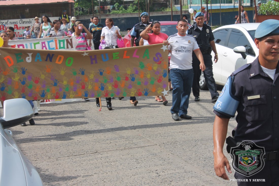 Con una marcha por varias calles de la comunidad de Curundú, los estudiantes de preescolar del centro educativo Marie Poussepin, retomaron este lunes sus actividades académicas. Los entusiastas caminantes, portaron pancarta y vistieron atuendo llamativos como tipo vaquero, para quienes los vieran pasar difundiendo en sus escritos mensajes alusivos a la importancia de la educación inicial en el estudiante. Con este tipo de jornada, se mantiene vivo el mensaje de prevención para enfrentar o rechazar los grupos delincuenciales que posteriormente puedan reclutar a los niños, adolescentes y jóvenes en riesgo social de comunidades como Curundú. |