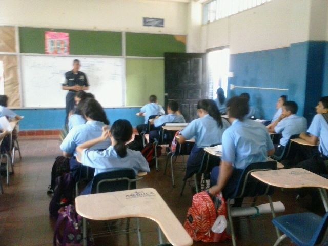 Estudiantes del colegio José Daniel Crespo en la provincia de Herrera, recibieron una charla de estrategias preventivas sobre temas de presión de grupo, prevención de drogas y el acoso escolar, dictadas por unidades de la Policía de Niñez y Adolescencia. Las unidades policiales interactuaron con los estudiantes, formando líderes de seguridad, con la finalidad de tener un acercamiento y confianza con las nuevas generaciones. Se trata de una iniciativa a nivel nacional llevado a cabo por la institución, denominado programa de Desarrollo Humano, Jóvenes Contra el Delito (JOCODE). |