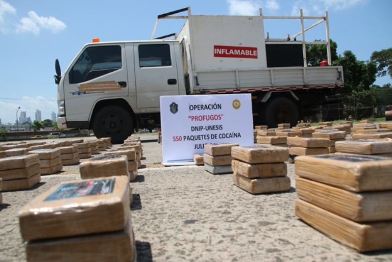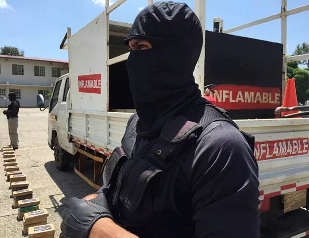 Un golpe de más de media tonelada de cocaína fueron decomisadas este miércoles en un retén en la vía Panamericana a la altura de la comunidad de San Carlos. En la acción desplegada por miembros de la Policía Nacional se aprehendió a un hombre oriundo de la provincia de Chiriquí, quien era el conductor del vehículo. La sustancia estaba oculta en tanques de combustible. En la acción se incautó 550 paquetes de cocaína y decomiso B/. 1. 490.00. Este decomiso se dio gracias a la colaboración de la comunidad, quienes alertaron de la supuesta aparición de uno de los tres reos que se evadieron de La Joyita el pasado 16 de junio. Para el Subdirector Operativo, Javier Castillo, esta es una muestra del trabajo que diariamente realizan los miembros de la Policía Nacional y la permanente colaboración de la ciudadanía. “Vamos a seguir golpeando a la delincuencia y esta la orden que hemos recibido del señor Director General de la Policía Nacional, Omar Ariel Pinzón Marín”, precisó Castillo. La Policía Nacional invita a la comunidad a seguir denunciando los hechos delictivos a través de las líneas telefónicas 104, 511-9339 y al 512-2222 o por intermedio de nuestra cuenta en Twitter @protegeryservir |