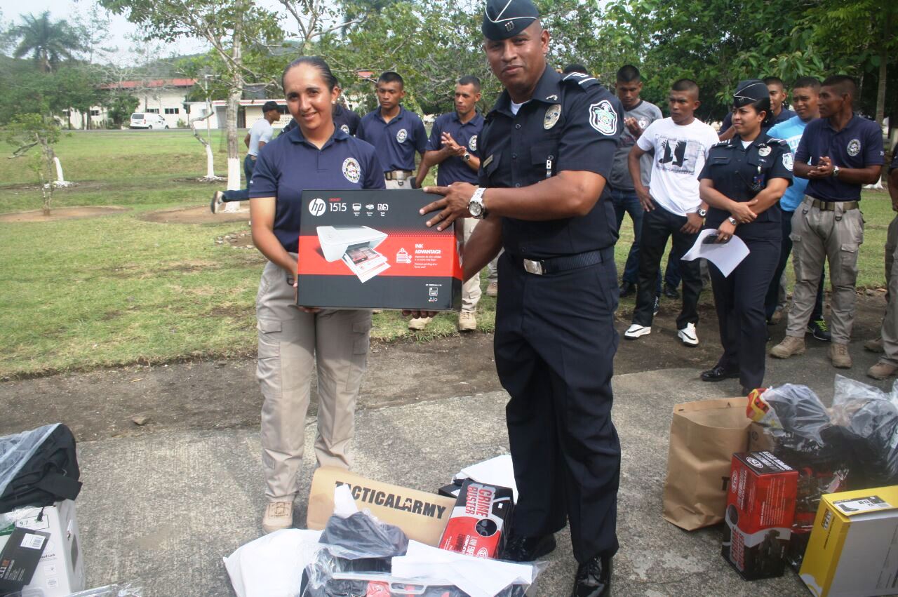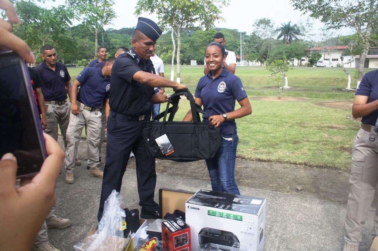 Los primeros puestos de honor de las dos promociones graduadas recientemente en el Instituto Superior Policial (ISPOL) recibieron de manos del Subcomisionado Manuel Zorrilla, y de otros oficiales, merecidos y valiosos premios por sus sobresalientes calificaciones. La entrega de premios se realizó recientemente, en la “Plaza de Armas” del Instituto, allí el comisionado Subcomisionado Manuel Zorrilla dijo estar satisfecho con la labor que pudo aportar para complementar la formación de éstos estudiantes que de seguro, aportarán todo su conocimiento y esfuerzo en pro de la seguridad pública de Panamá. Entre los premios estuvieron, computadoras tipo Laptop y para escritorio, con sus respectivas impresoras y maletines. Estos estudiantes forman parte del grupo total de 652 nuevos agentes que juraron este lunes 29 de junio de 2015, ante el Presidente de la República Juan Carlos Varela, el Director General de la Policía NACIONAL. Omar Ariel Pinzón Marín, miembros del Directorio Nacional, invitados especiales y familiares presentes en este acto, defender a la Patria y honrar el lema de "Proteger y Servir". El Subcomisionado Zorrilla estimuló a los graduados, a motivar a otros jóvenes para que ingresen al Instituto Superior Policial (ISPOL) a través de un contacto directo con las oficinas de reclutamiento y selección a lo largo y ancho del territorio panameño. Para esto, deben poseer título de bachiller, entre otros requisitos que se les dicen de manera personal o marcando la línea de teléfono 225-2554. La creación del ISPOL ofrece al país policías con una preparación académica más acorde con las necesidades de la sociedad actual, pero con el mismo ánimo y compromiso. Éstos jóvenes recién graduados y juramentados, ya son miembros de la Policía Nacional y ostentan del título de “Técnicos Superior en Seguridad Pública”.