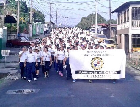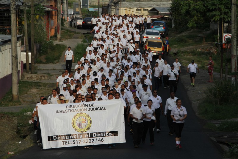 La Policía Nacional a través de unidades de la Dirección de Investigación Judicial (DIJ) realizaron hoy en San Miguelito, una caminata en pro de la seguridad ciudadana basada en la prevención del delito. |