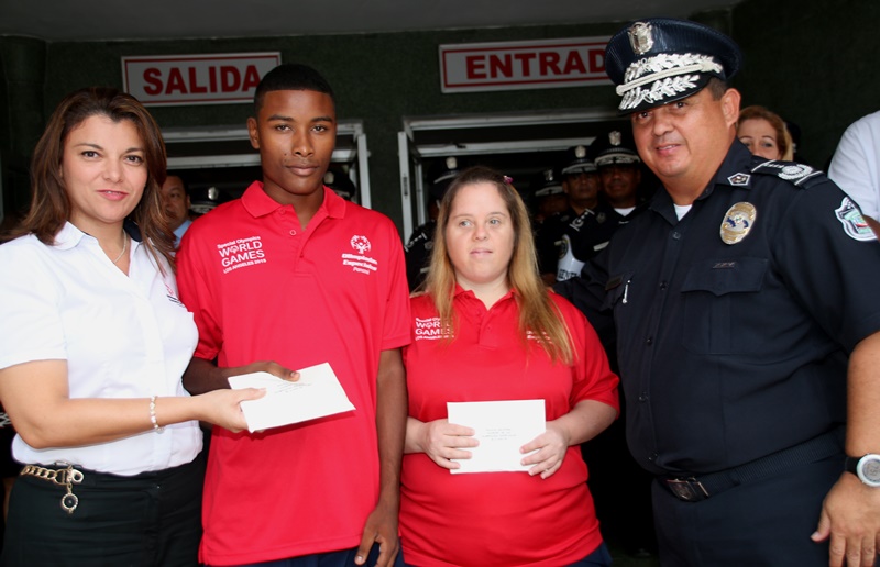 La Policía Nacional bajo el mando del Director General, Omar Ariel Pinzón Marín hizo entrega de un aporte a sus dos atletas ahijados de Olimpiadas Especiales de Panamá, que nos representarán en las próximas competencias de verano realizadas en Los Ángeles, California Estados Unidos. Esta entrega se hizo en un acto protocolar durante un “acto cívico” que se realiza los primeros días de cada mes, haciendo honor al Pabellón Nacional. La Directora Ejecutiva de Olimpiadas Especiales, Sandra Sánchez, agradeció a la Institución Policial y su director General Omar Pinzón, por la calidad humana y apoyando siempre a los atletas de a Olimpiadas Especiales. Por su parte el Director Omar Pinzón, mostró su complacencia en poder contribuir en el desempeño deportivo de estos jóvenes especiales, que con sus discapacidades diariamente luchan por demostrarle a la sociedad, su capacidad de conseguir sus metas. En el acto protocolar, participaron miembros del Directorio General de la Policía Nacional, Unidades policiales de las diversas dependencias, miembros no Juramentados e invitados Espaciales. |