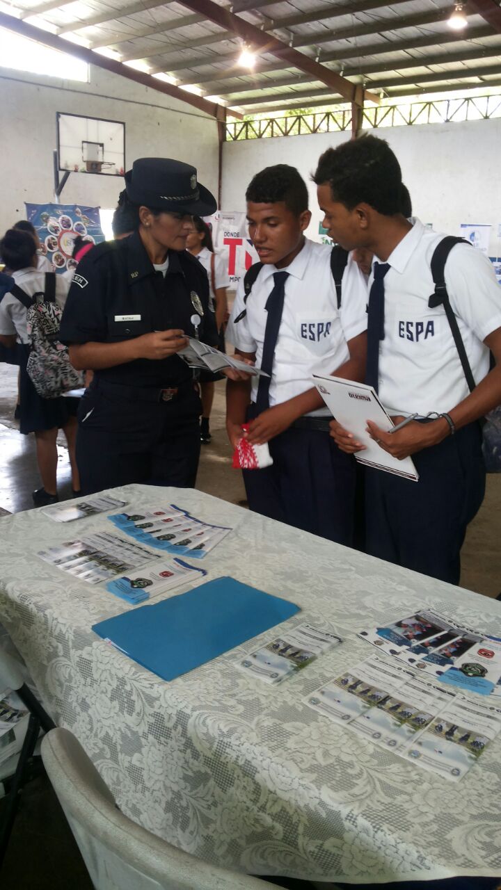 Unidades del Departamento de Reclutamiento de la Dirección Recursos Humanos, como parte de su labor de promover la carrera policial, conversaron con jóvenes chiricanos en una feria realizada en la Escuela Secundaria de Puerto Armuelles, sobre los beneficios de integrarse a la Policía Nacional. Los más de 200 jóvenes que acudieron a esta feria, dijeron que la carrera policial es una excelente opción como profesión en un futuro. Personal de Reclutamiento de la Policía Nacional continuará su recorrido por diferentes puntos del país, promocionando la carrera policial e incorporar a más jóvenes en la tarea de brindar seguridad al país. |