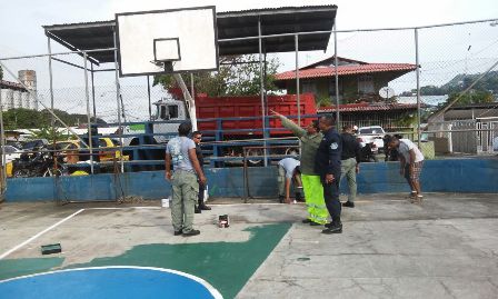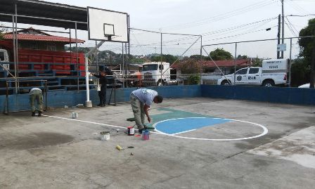 Unidades de la Policía Nacional Comunitaria del distrito de San Miguelito, realizaron una jornada de limpieza y pintura a la cancha de basketball de Paz de Azúcar. Esta jornada se desarrolló con el objetivo de crear un acercamiento con la comunidad y así colaboren con las unidades policiales en el ataque a la delincuencia. En esta actividad participó el jefe de la 2da.Region Policial Alonso Vega Pino y el comisionado Urracá de La Hoz. El comisionado Vega Pino dijo que estas labores sociales se realizan con el fin de integrar a niños y jóvenes en actividades que redunden en beneficio de la comunidad. Los residentes del lugar se sintieron satisfechos y agradecidos con la unidades de la Policía Comunitaria. |