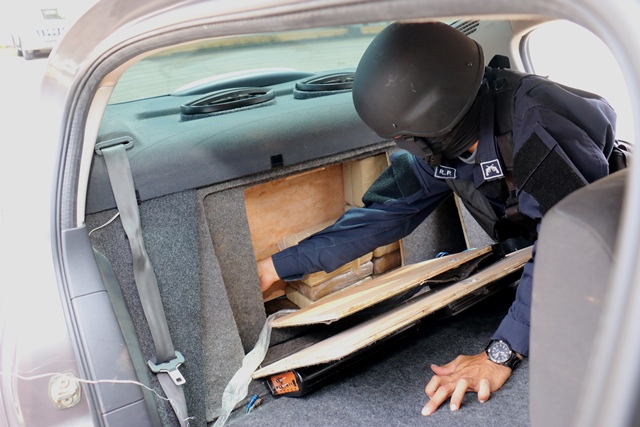 La ronda de patrullaje inmediatamente se dirigió al sitio a verificar el auto que se encontraba en el lugar señalado por el denunciante, luego al ser inspeccionado junto con funcionarios de la Fiscalía de Drogas, se ubicó un doble fondo con la droga.
