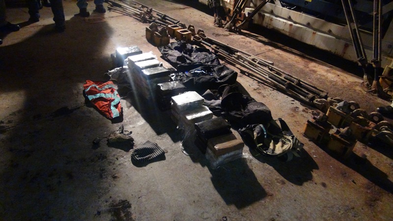 Unos 41 paquetes forrados con cinta adhesiva que contenían supuesta cocaína en fueron incautados mediante un operativo realizado en el Puerto Balboa por los efectivos de la Policía Nacional, funcionarios del Ministerio Público y demás estamentos que integran la Unidad de Control Conjunto. La droga fue encontrada en cinco maletines, que estaban en la cubierta de un buque procedente de un puerto de Quito, Ecuador, en tránsito por nuestro país, con destino hacia Europa. La sustancia ilícita fue sometida a la prueba preliminar de campo, resultando positivo en cocaína y puesta a órdenes de las autoridades judiciales. |