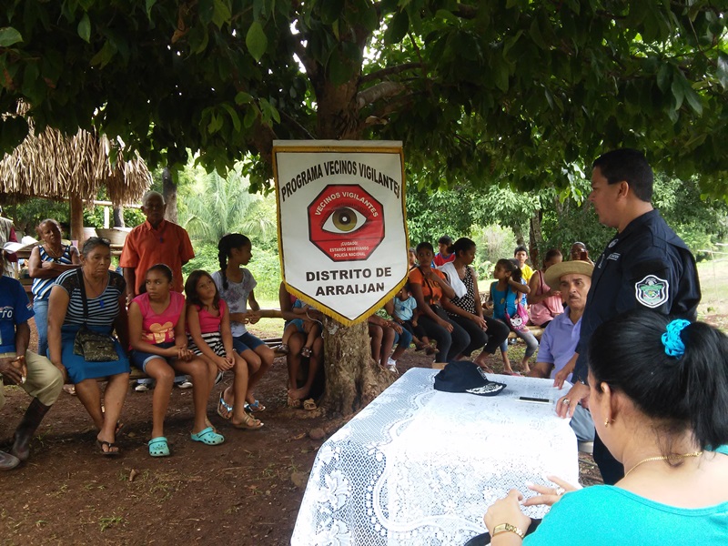 El Comisionado José Flores, Ejecutivo de la Treceava Zona Policial de Arraiján, inauguró este sábado 18 de julio, el primer programa de Fincas Vigilantes, organizado por unidades del Departamento de Seguridad Ciudadana, en la barriada 13 de Febrero, corregimiento de Burunga. La ceremonia de inauguración inició con la invocación religiosa a cargo de la señora Santa Benita Castillo y seguidamente el Presidente del Comité Arbelio Campos, dio las palabras de bienvenida a los invitados. Durante el programa la niña Luzmila Marciaga, dio lectura al compromiso de la sociedad civil ante los programas de vigilancia comunitaria. El Comisionado José Flores durante su intervención felicitó a las 21 familias dedicadas a cultivar en más de 28 hectáreas de tierras y por la dedición de unirse a los programas de seguridad de la Policía Nacional para proteger sus cultivos y evitar la deforestación de esta área de protección de la cuenca del Canal. |