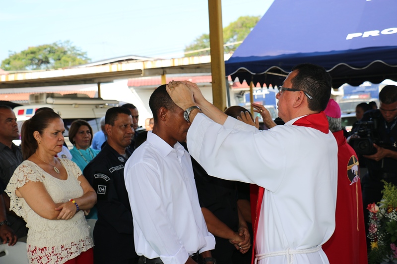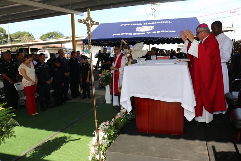 Un total de 37 cadetes del Instituto Superior Policial, ISPOL, fueron investidos con el sacramento de la Confirmación de la Iglesia Católica, en medio de un acto que presidió el Obispo del Vicariato Apostólico de Darién, Pedro Hernández Candanedo. “Tenemos la confirmación de 37 hermanos que se preparan para ser enviados no solo como policías sino como misioneros de Cristo al servicio del pueblo cristiano” dijo el Obispo Hernández. Pidió a los miembros de la Policía Nacional sentirse integrado en este proyecto de Jesucristo, no sólo del servicio de protección a la ciudadanía, sino ser enviados para anunciar las buenas nuevas de la salvación con una actitud de testimonio e integridad a los principios cristianos. En tanto, el Director de la Policía Nacional Omar Ariel Pinzón Marín, quien estuvo en este acto realizado en la sede de la entidad de seguridad en el corregimiento de Ancón, explicó que esta es una institución que se arrodilla ante los mandatos de Dios. Para Pinzón una institución sin fe, es una institución sin Dios, que no tiene un camino, no tiene un objetivo y por mucho que trabaje no va alcanzar esa paz. “Sea cual sea la fe que se practique dirigida hacia Dios, nosotros lo apoyamos, porque estamos interesados en mejorar la moral y la fe de las unidades, así como apoyar a las familias”, sostuvo Pinzón. |
