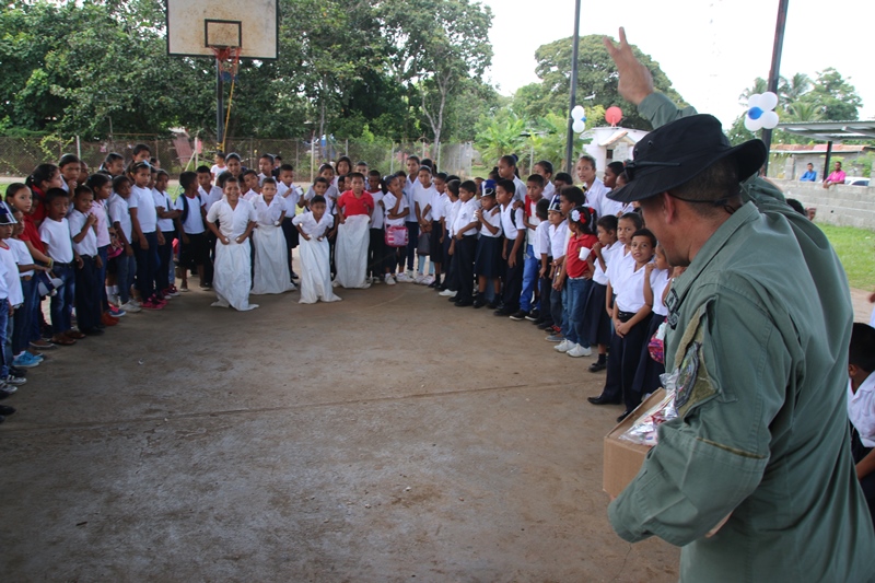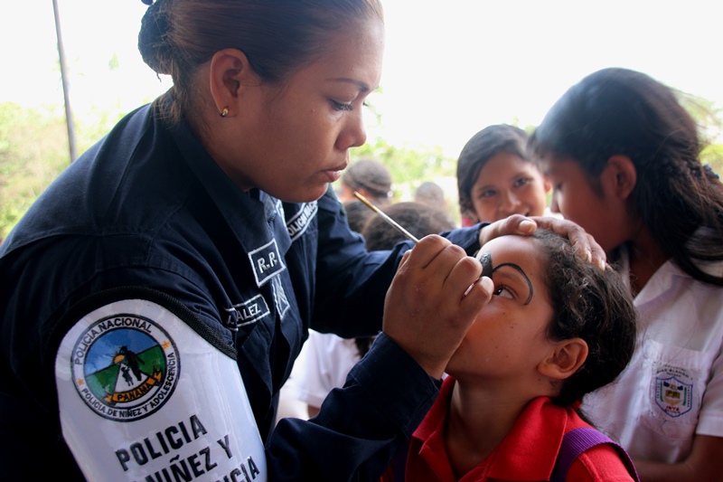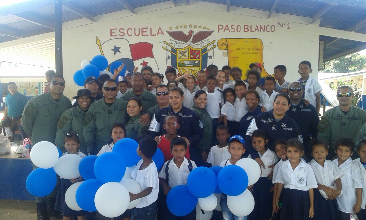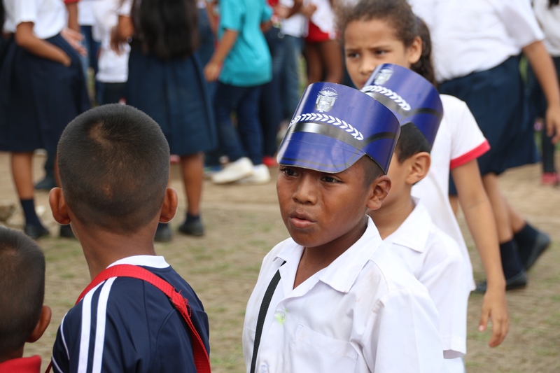 Muchas fueron las sorpresas que organizaron los uniformados del Servicio Policial de Seguridad Penitenciaria de la Policía Nacional a los niños de la escuela de Paso Blanco en Pacora, en celebración del Día del Niño y la Niña. La diversión se tomó este plantel, donde los pequeños agasajados disfrutaron de diversos juegos, paseos en moto, pinta caritas y muchos premios, siendo sus risas la mejor música que alegró el ambiente. Los niños y niñas también recibieron la visita de Polita, amiga incondicional de los más pequeños y que aprovechó el momento para recordarles la importancia de estudiar, portarse bien en su hogar y en la escuela. Además de brindarles consejos de seguridad como lo son, no irse con extraños y ser cuidadosos al cruzar las calles. El Servicio Policial de Seguridad Penitenciaria adscrita a la Subdirección de Asuntos Penitenciarios de la Policía Nacional no solo custodia la parte externa de las cárceles del país; también cumple su misión de servir a la comunidad, compromiso que distingue a los miembros de la primera institución de seguridad.