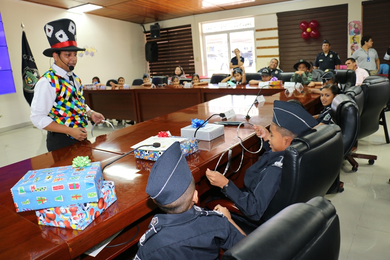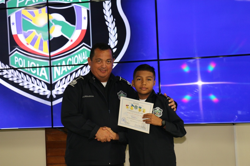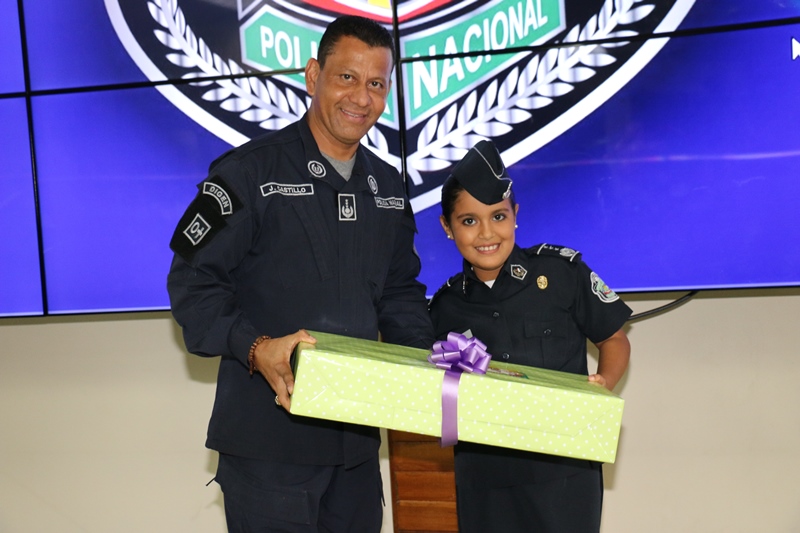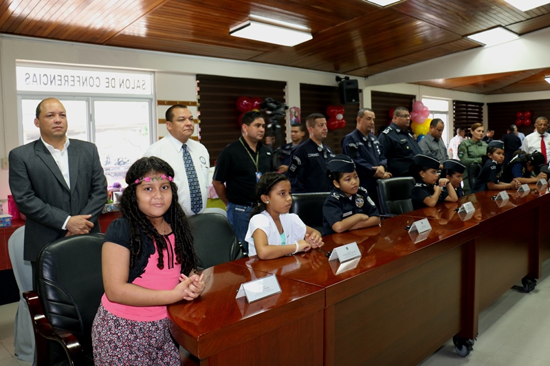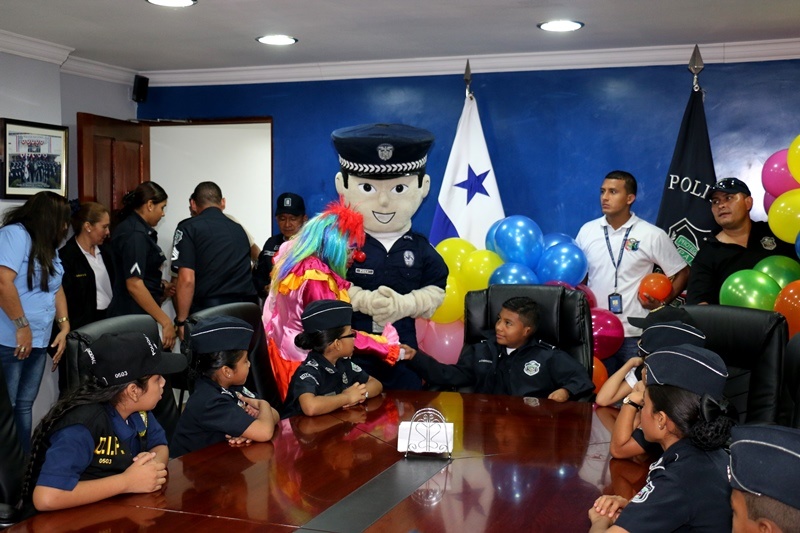 Como parte de los festejos por el Día del Niño, la mañana de este viernes el pequeño Aldahir Josué Carpintero Trotman, de 12 años de edad, fue nombrado como “Director General de la Policía Nacional” por 24 horas en lugar de Omar Ariel Pinzón Marín. El nuevo jefe por un día, es un estudiante destacado con un promedio de 4.9... y gracias a su dedicación a los estudios llegó a sentarse en el Despacho Superior de la primera institución de seguridad. Después que se aprobara y otorgara el nombramiento al pequeño Director, Aldahir en compañía de los miembros de su directorio la pasaron de maravilla y se divirtieron con los diferentes juegos, presentaciones artísticas, globos, payasitos, concursos, regalos y premios. Estos 25 niños y niñas aprovecharon el momento para visitar las instalaciones de la Policía Nacional en la sede de Ancón. Durante el agasajo, todos los miembros del directorio les entregaron un obsequio a quienes los estaban reemplazando y los exhortaron a seguir cosechando triunfos escolares. En su intervención, el jefe policial Omar Ariel Pinzón Marín, felicitó a cada uno de los pequeñines y los instó a dar siempre lo mejor de sí y aprovechar la oportunidad que les dan sus padres. "Ya todos son ganadores y Dios primero, lo seguirán siendo. Hoy representan a un uniformado… gracias por creer en nosotros y en amar el uniforme de color azul que lucen más de 18 mil hombres y mujeres… nunca lo olviden, ustedes son el futuro de esta nación", destacó Pinzón mientras estaba rodeado de los miembros del directorio infantil. Cada año la Policía Nacional realiza una selección de varios niños con el índice más alto… la escogencia no fue fácil, pero lo logramos, porque cada actividad o evento que involucre a los pequeños, siempre podrán contar con cada integrante de esta gran familia policial. Felicidades a todos ellos por acompañarnos.