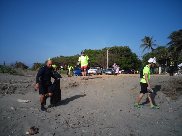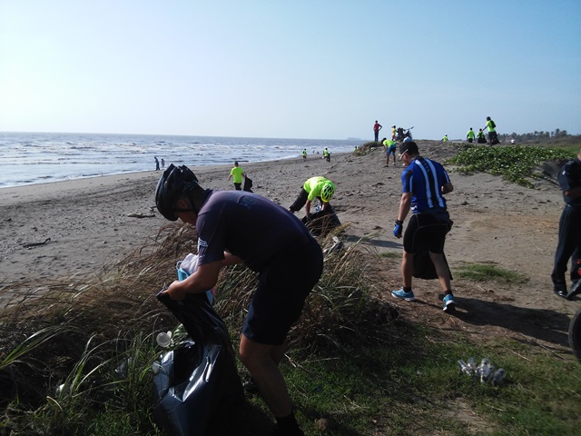 POLICÍA DE HERRERA Y CLUB CICLÍSTICO EN JORNADA DE LIMPIEZA EN PLAYA MONAGRE