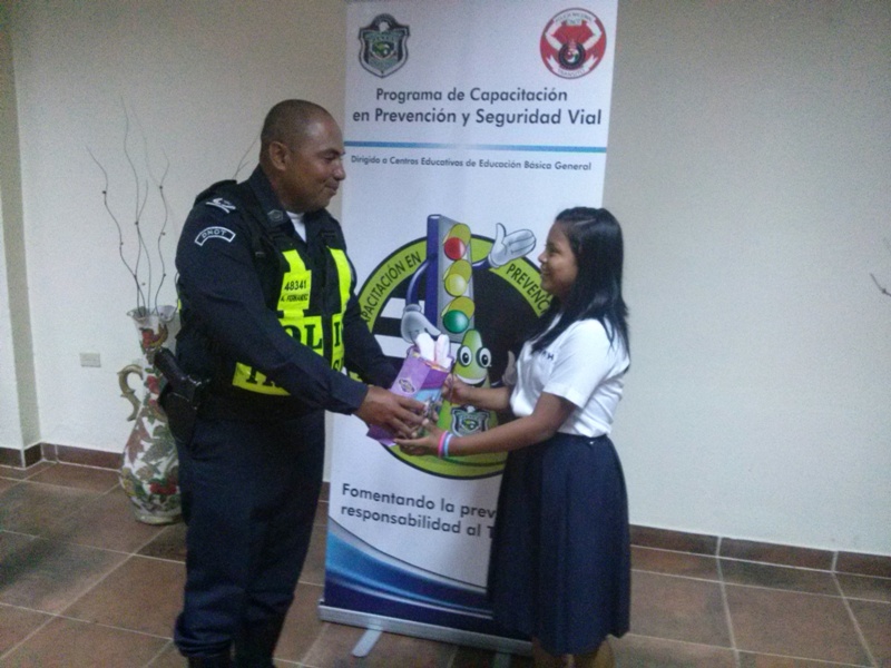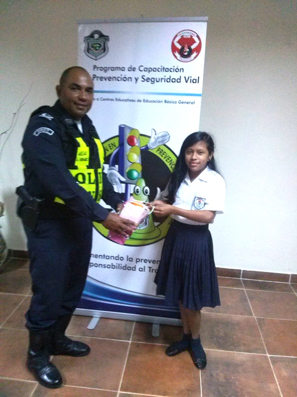 Unidades de la Policía Nacional de servicio en la Dirección Nacional de Operaciones del Tránsito en Coclé, realizó un concurso de oratoria bajo el lema " Todos debemos velar por la Seguridad Vial". En este concurso se escogió a una exponente que representará al Tránsito de Coclé, en la oratoria a nivel nacional a celebrarse el 19 de agosto del año en curso en Panamá, conmemorando los 46 aniversarios. La actividad se realizó en el Salón Azul del Hotel Dos Continente, con la participación de tres exponentes de diferentes centros escolares: Eileen Arias de la Escuela Modesto Morán, Valery Nicole Vásquez de la escuela Caballero de Antón y Marifer Marina Bernal de la escuela Simeón Conté, cursando todas el VI grado. Para el Mayor Adán Fernández, dijo que estos eventos permiten fomentar el respeto a las leyes del tránsito y prevenir los accidentes, creando cultura vial. El primer lugar se le otorgó a la niña Valery Nicole de la escuela Caballero de Antón, mientras que el 2do lugar se lo llevó Eileen Arias de la escuela Modesto Morán y el tercero a Jennifer Bernal de la escuela Simeón Conté. Las niñas recibieron obsequios y reconocimientos por unidades de la Dirección Nacional del Tránsito. |