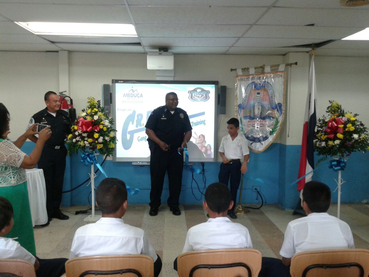 El comisionado Luis Navarro, jefe de la Treceava Zona Policial presidió en la mañana de éste lunes 27 de julio, la ceremonia de lanzamiento del programa de Desarrollo Humano GREAT en el centro Básico Nuevo Arraiján. El Comisionado Navarro manifestó que este programa tiene como objetivo orientar a los estudiantes para que puedan reconocer y resistir las múltiples presiones directas y sutiles que los llevan a experimentar el flagelo del pandillerismo. El acto se realizó en las instalaciones del centro educativo en el que también participaron autoridades de la Dirección Regional de Educación, Ministerio de Desarrollo Social y del Instituto para la Formación y Aprovechamiento del Recurso Humano. Al finalizar el evento, el comisionado Navarro, conjuntamente con las autoridades invitadas, hicieron entrega de los cuadernillos del programa a los 150 estudiantes participantes.