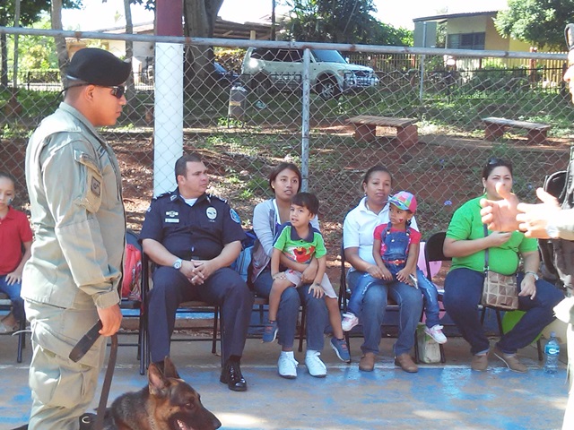 Unidades de la Sección Canina, Niñez y Adolescencia y de Seguridad Ciudadana de la Policía Nacional en Herrera, estuvieron compartiendo con el grupo “Reintegra”, que son niños con condiciones especiales. La actividad fue una caminata por las principales calles de Chitré y concluyó con un acto de las unidades de la Policía Canina de Herrera, quienes realizaron una presentación de disciplina y obediencia, así como saltos de obstáculos para estos pequeños. En el acto estuvo el Comisionado Ismael Herrera, jefe de la Zona de Policía de Herrera, acompañado de oficiales que se dieron cita para motivar a estos pequeños. |