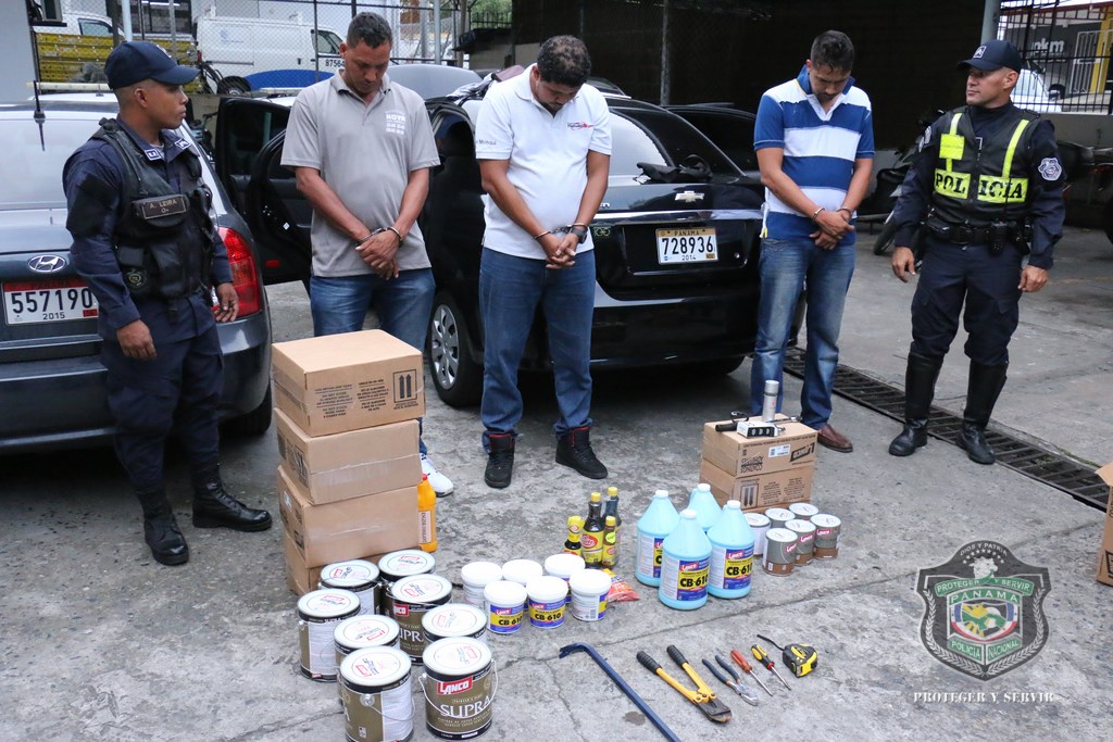 Pretendían pintar la gran hazaña, pero escogieron la pintura equivocada. Esto les ocurrió a tres panameños que fueron capturados cuando hurtaban mercancía de un busito tipo panel, que estaba estacionado en una esquina de calle 77, en el corregimiento de San Francisco. La aprehensión de estas personas se dio al recibirse la alerta que unos sujetos de manera sospechosa, sacaban varias latas de pintura y otros productos por la ventana trasera del vehículo, perteneciente a una empresa para introducirlos a un auto Chevrolet Aveo color negro, en el que pretendían huir con la mercancía. Los efectivos policiales llegaron de inmediato al lugar, encontrándolos con unas las latas en las manos. Estos malhechores aprovecharon mientras el conductor fue a entregar una factura para desprender el plástico que cubría la ventana trasera del panel y sacar los artículos. Dentro del auto Chevrolet Aveo también fueron encontrados una cizalla, destornilladores, una cinta de medir y un alicate, presuntamente utilizados para cometer hurtos. Estas personas fueron llevadas a la subestación policial de San Francisco junto a las evidencias para ser puestos a órdenes de las autoridades judiciales. |