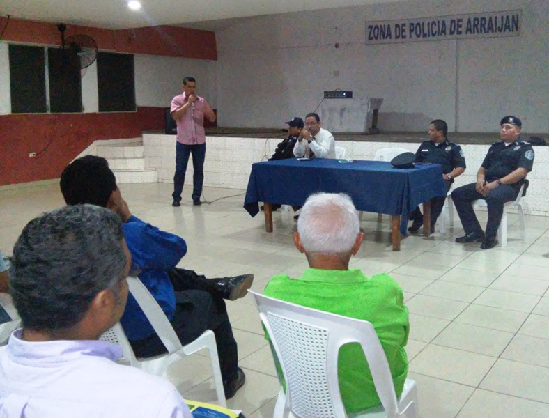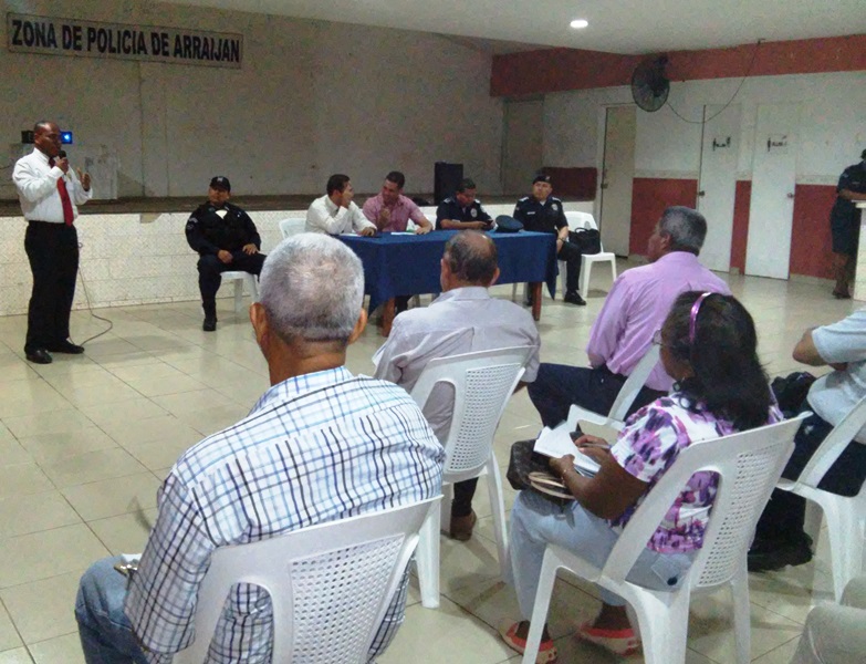 Miembros de la Policía Nacional, realizaron un conversatorio con dirigentes de los 79 programas de seguridad ciudadana en las instalaciones de la Junta Comunal de Juan Demóstenes Arosemena, en Arraiján. Al inicio del programa se hizo una presentación formal del Comisionado José Flores, como oficial ejecutivo de la Treceava Zona Policial, quien posteriormente respondió a las preguntas y sugerencias de los asistentes. La actividad fue aprovechada por líderes comunitarios para elevar a las autoridades problemas existentes dentro de sus comunidades. |