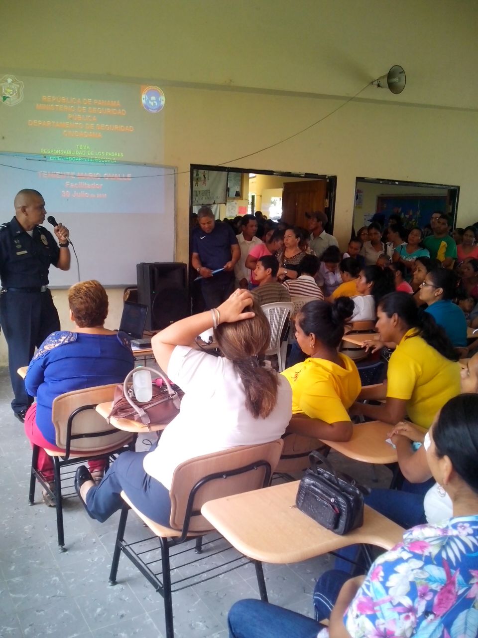 Más de 500 padres de familias del centro escolar Federico Zúñiga, en el distrito Penonomé, en la provincia de Coclé, participaron en una charla amena y motivadora sobre los problemas que afectan a la población estudiantil, impartida por unidades del departamento de Seguridad Ciudadana y de la Policía Cristiana. "Es responsabilidad de los padres de familias que sus hijos se formen en hogares disciplinados, donde la comunicación debe prevalecer", expresó el teniente Mario Ovalle durante su exposición. Por su parte, la licenciada Yanelin Pérez, psicóloga del Ministerio de Educación junto a los padres de familia agradecieron a los uniformados por su orientación y la labor que realizan en bien de la comunidad. Con esta actividad se busca incentivar en los jóvenes valores como el respeto, responsabilidad, amistad y honestidad, principios fundamentales en la formación de un ser humano integro. A su vez, brindarles consejos para alejarlos de las drogas y otros vicios. |