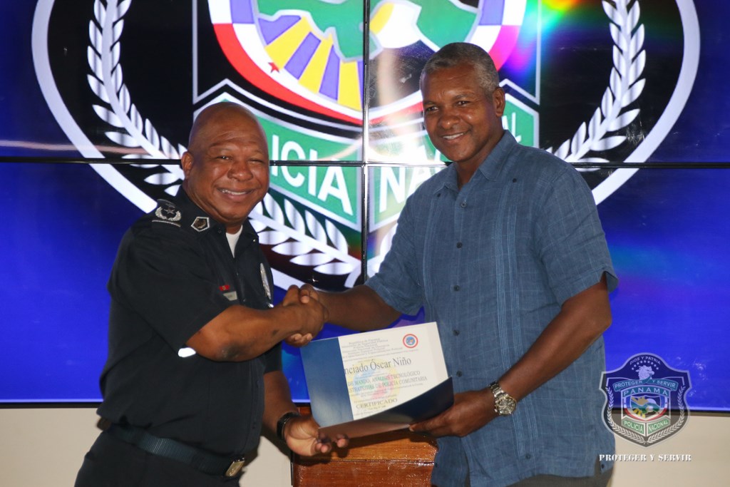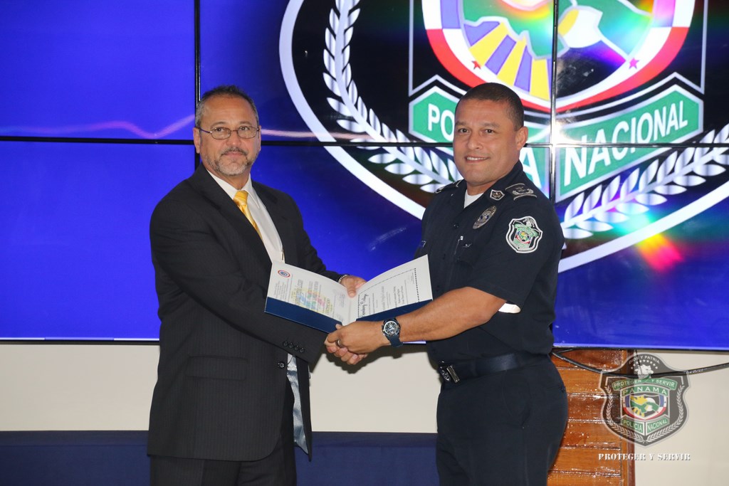 Oficiales, clases y agentes de la Policía Nacional recibieron sus certificados tras culminar el Seminario de “Mando, Análisis Tecnológico y Diseño de Estrategias de Policía Comunitaria”, que fue dictado por docentes del Instituto Regional de Policía Comunitaria de St. Petersburg College, de Florida, Estados Unidos. Esta capacitación que duró una semana fue dictada en la sede policial del corregimiento de Ancón, donde los instructores les orientaron sobre las herramientas adecuadas para prever y elaborar estrategias de seguridad acorde a las necesidades de cada sector de responsabilidad. También se les habló sobre la filosofía de Policía Comunitario y su aplicación, como estrategia de acercamiento a la comunidad. Durante la ceremonia de clausura, el Subdirector Operativo de la Policía Nacional, Javier Castillo agradeció a los facilitadores por aportar a la institución sus conocimientos que se reflejarán en beneficio de la comunidad. “La Policía Nacional se profesionaliza con nuevas técnicas y a través de la constante capacitación, siendo la docencia un pilar importante para preparar a los uniformados en las nuevas tendencias a nivel internacional, y así prestarle un mejor servicio a la comunidad”, expresó Castillo. Por su parte, el Doctor Ernesto Fernández, del St. Petersburg College agradeció la hospitalidad brindada, a la vez que se mostró complacido de contribuir al fortalecimiento de conocimientos del cuerpo policial panameño. El comisionado y jefe de la Primera Región Policial, Julio Lasso, quien fue uno de los participantes, dio las gracias a los docentes a nombre de sus compañeros de curso. “De seguro estos conocimientos serán de apoyo en nuestras áreas de trabajo”, acotó Lasso. Finalizada la ceremonia se hizo entrega de obsequios a los instructores de este curso, que al igual que otras capacitaciones que se han realizado bajo la gestión del actual Director Omar Ariel Pinzón Marín, tienen como propósito primordial optimizar recursos tecnológicos y preparar al personal para servir a la comunidad con mayor profesionalismo y colocar a la Policía Nacional de Panamá, al nivel de las mejores policías del mundo. |