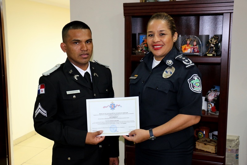 El cabo primero de la Policía Nacional Arístides Rodríguez perteneciente a la Dirección Nacional de Docencia regresó a Panamá luego de haber culminado su Licenciatura en Seguridad Nacional, con Especialización en Investigación, otorgada por la Universidad de Moscú del Ministerio del Interior (MVD) V. Ya. Kikotya. Luego de finalizado este curso el cabo primero de la Policía Nacional Arístides Rodríguez, retornó a Rusia para culminar su segunda preparación, que tiene previsto finalizar en el año 2019. Por otro lado, el subcomisionado Sisinio Núñez y el capitán Geovani Moreno de la Dirección Nacional de Inteligencia Policial (DNIP), retornaron a la Policía Nacional procedente de Estados Unidos luego de culminar satisfactoriamente el Ejercicio Panamax 2015. El mismo se desarrolló en San Antonio Texas, del 25 de julio al 5 de agosto del presente año. Durante el Ejercicio Panamax 2015, se efectuaron varias dinámicas, ejercicios prácticos de planificación estratégicas orientados a la seguridad de Panamá y sus vía marítimas, ante cualquier amenaza o acción terrorista. |