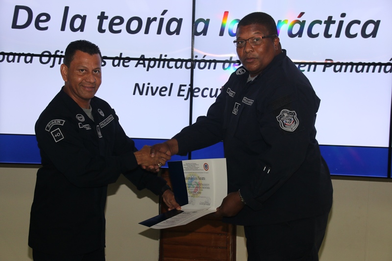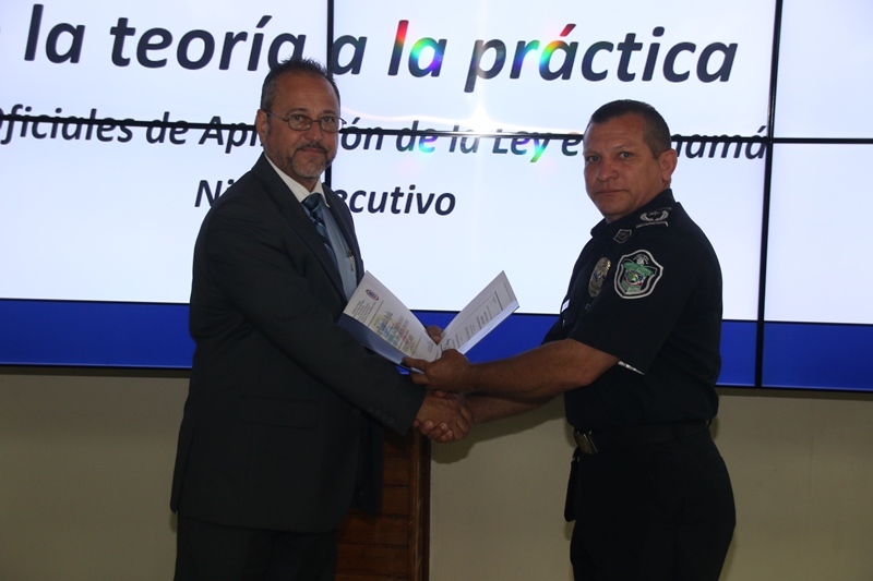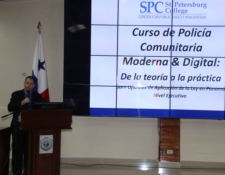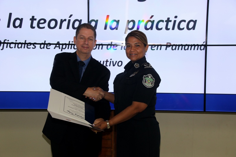 Este Viernes 7 de Agosto, culminó el curso de Policía Comunitaria Moderna y Digital “de la teoría a la Practica” para el segundo grupo de oficiales y jefes de Zona policiales, dictado por expertos de S.P.C S.T. Petersburg Collage, Center for Public Safety Innovation, en el Salón de conferencias de la Policía Nacional, ubicada en Ancón. Los participantes reforzaron sus conocimientos de Análisis Criminal, que busca mantener a las unidades vigentes y actualizadas en materia de tecnología e inteligencia criminal con un alto grado de profesionalismo y calidad en el desarrollo en planes estratégicos involucrando a la participación ciudadana. En este evento estuvo presente el Director General de la Policía Nacional, Omar Ariel Pinzón Marín; el Sub Director General Operativo, Javier Castillo, los facilitadores del curso, Dr. Ernesto Fernández e inspector José Figueroa. El Director General de la Policía Nacional, enfatizó en la importancia de la actualización policial a través de técnicas que ayudan a contrarrestar los índices delictivos, debido a la evolución de las agrupaciones criminales en nuevos métodos para cometer los diferentes delitos. Dijo que para obtener buenos resultados se necesita poner en práctica lo aprendido en este curso, requiriendo la participación de hombres y mujeres convencidos de esa pasión e integridad, para cumplir el reto de lucha contra la criminalidad. Mientras que Comisionado Néstor Valdez de la Zona Policial Canalera, como parte del grupo capacitado, agradeció por tan importante curso que les permitirá entender mucho más, los problemas sociales, utilizando las herramientas disponibles para el desempeño de un mejor trabajo. Cada uno de los participantes recibió su certificado, mientras que la Sub Comisionada Elida Villareal y el cabo primero Elsa Rodríguez, realizaron la entrega de presentes a los facilitadores del curso.