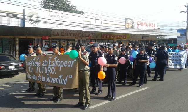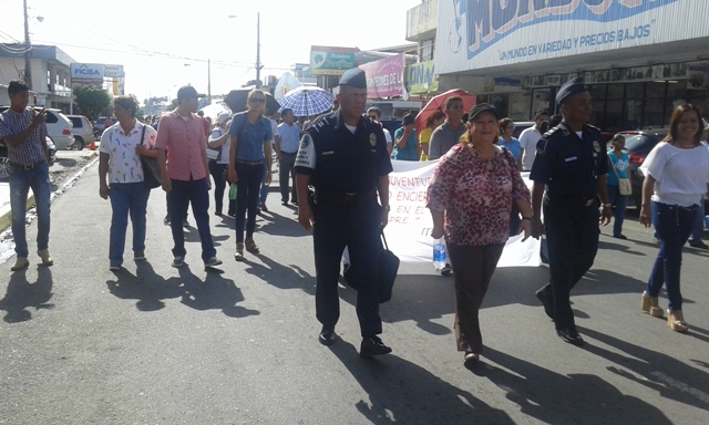 Unidades Policiales, estudiantes del Instituto superior de Policía (Ispol) y personal no juramentado de la Zona Policial de Veraguas, participaron de la caminata por el Día Internacional de la Juventud. Este año el lema fue “Diviértete sin estropear tu futuro”. La marcha recorrió las principales calles del distrito de Santiago y culminó en el parque Juan Demóstenes Arosemena, en donde posteriormente se realizaron varias presentaciones alusiva a la celebración. Asistieron muchas entidades públicas y privadas como la Cruz Roja, MOP, SENNIAF, MEF, MIDES, entre otros. Las palabras de inicio fueron expresadas por la honorable Gobernadora de la Provincia de Veraguas, la profesora Olga Pereira de González, quien exhortó a los jóvenes a seguir participando en actividades que contribuyen al desarrollo del país. |