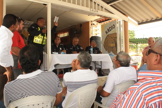 Miembros de la Policía Nacional, se reunió con transportistas de las piqueras de taxis de Colón, Pueblo Nuevo y San Miguelito, en la Plaza de Villa Lucre, donde trataron temas de seguridad, prevención y acercamiento con las unidades policiales que laboran en sus sectores, con el fin de coordinar acciones contra los hechos delictivos. En esta reunión estuvieron presentes: el Jefe del Departamento de Seguridad Ciudadana, el Comisionado Rafael Álvarez, el Jefe de la 17va. Zona Policial, Roberto Castillo, el encargado de la subestación de Villa Lucre, el Subcomisionado Senén Castillo y el encargado de la oficina de Seguridad Ciudadana de la 2da. Región, el Capitán Héctor Gómez. El comisionado Álvarez se dirigió a los Transportistas Vigilantes, dándole las gracias por trabajar de la mano con la Policía Nacional y mantenerse activos y así brindar un mejor servicio a la ciudadanía. También se repartieron volantes con "tips" de seguridad y los números de teléfonos de las subestaciones más cercanas para cualquier reporte o apoyo.
