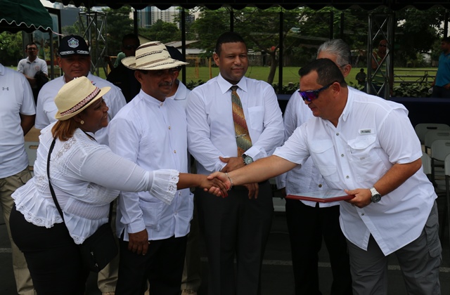 La banda de música de Policía Nacional, con sus notas musicales deleitó a los nacionales y extranjeros que se dieron cita en las ruinas de Panamá la Vieja, para disfrutar de un vistoso desfile en celebración de los 496 años de fundación. El Director de la Policía Nacional Omar Ariel Pinzón Marín estuvo presente en este acto junto a miembros del Directorio Nacional de esta Institución. El representante del corregimiento de Parque Lefevre, Sebastián Abadía le hizo entrega al Director General de la Policía Nacional una Placa de reconocimiento, por su labor desempeñada en pro de la ciudadanía. Mientras que la Banda de Guerra y el grupo de escoltas de la Policía, simbólicamente le obsequio al jefe de la institución Omar Pinzón, un clarín y Daga, como símbolo de agradecimiento por el apoyo brindado. Las ruinas de aquella ciudad abandonada y destruida, que hoy se conocen como Conjunto Monumental de Panamá Viejo, son uno de los puntos turísticos más atractivos del país.