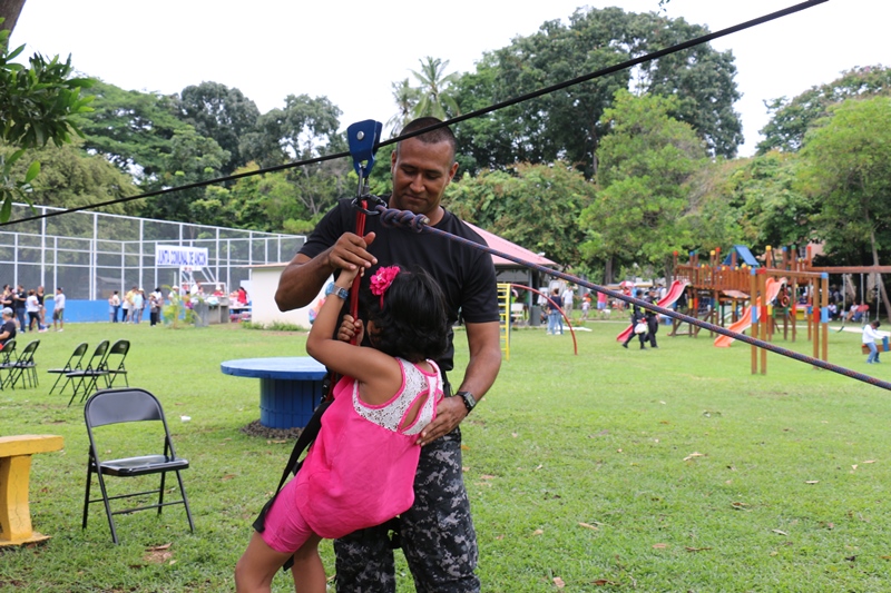 Nuestras acciones van dirigidas a lograr un acercamiento más concreto con la comunidad, por lo que junto a la Junta Comunal del corregimiento de Ancón participamos en la inauguración del parque recreativo Mango. El evento contó con la presencia de representantes de varias instituciones, iglesias y miembros de la comunidad. Entre las actividades desarrolladas, se encontraban presentaciones artísticas, talleres de pinturas, pinta caritas, comidas tradicionales y juegos deportivos. El stand de Policía Nacional estuvo ambientado con la murga, allí se entregaron panfletos con mensajes educativos y preventivos. Además las unidades de la Fuerzas Especiales, colocaron el Rapel, donde niños y adolescentes se subían, para entretenerse y divertirse. Quienes sacaron aplausos y sonrisas a grandes y chicos, fueron el grupo de la Unidad Canina de la Policía Nacional, con sus destrezas, habilidades y trucos, acapararon la atención de todos, robando sus aplausos y sonrisas. La Sub Comisionada Alietty Rodríguez, de la Zona Policial del Canal, indicó que es muy importante para la institución el apoyo que se le da a la comunidad, debido a que con la construcción de aéreas recreativas, los niños y jóvenes ven la oportunidad de tener lugares de esparcimiento alejándolos de malos hábitos. |