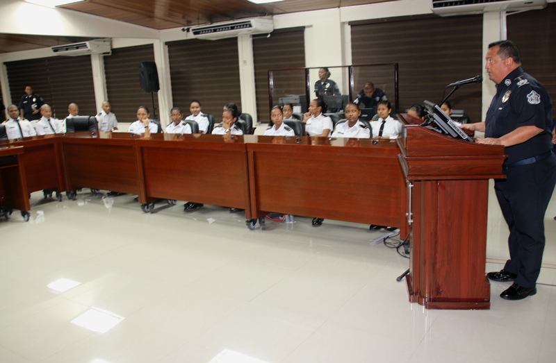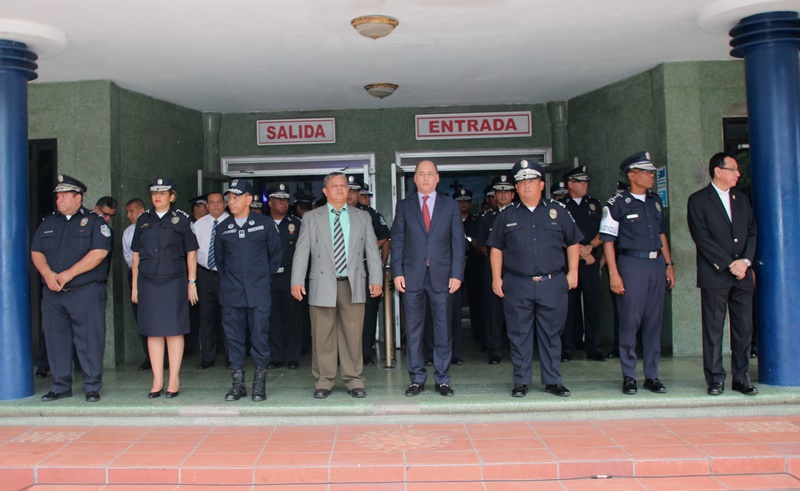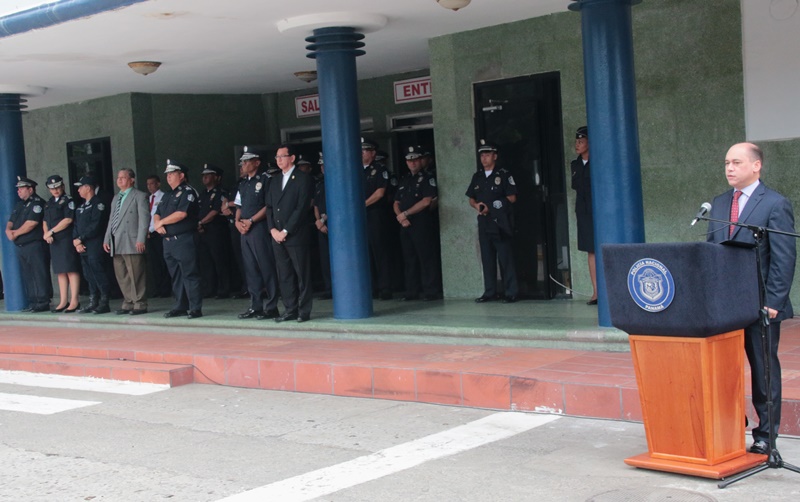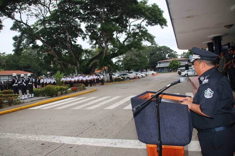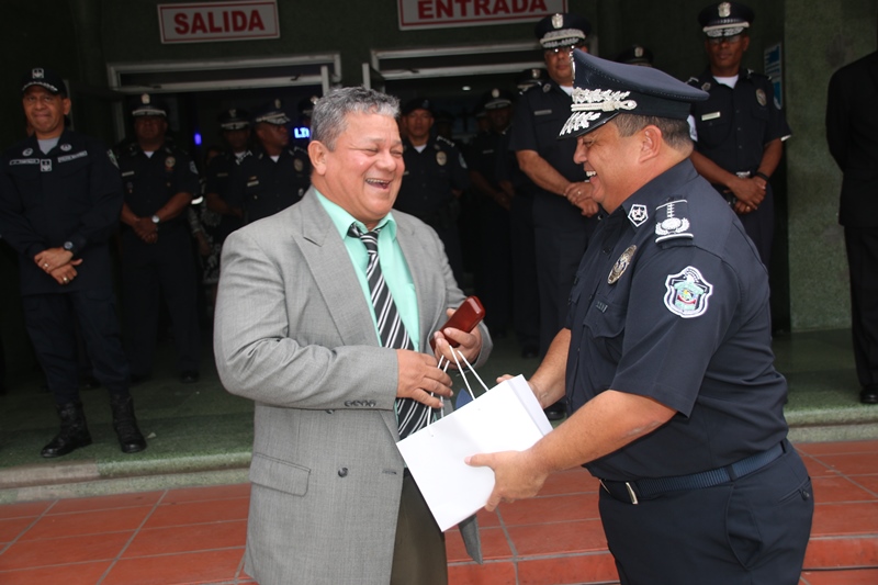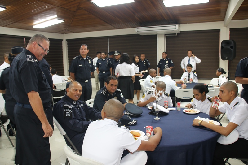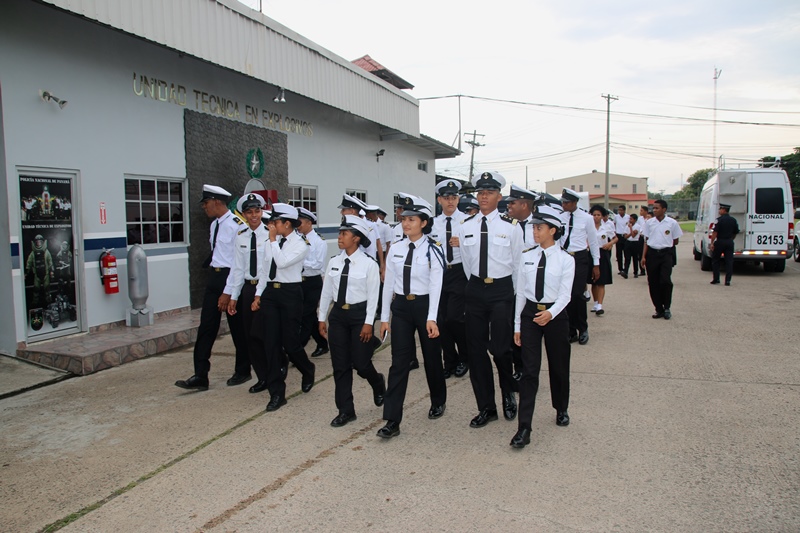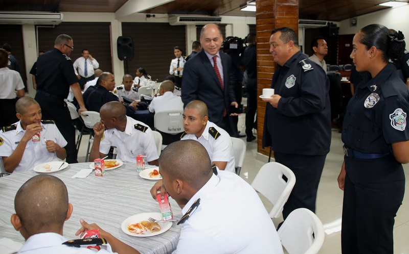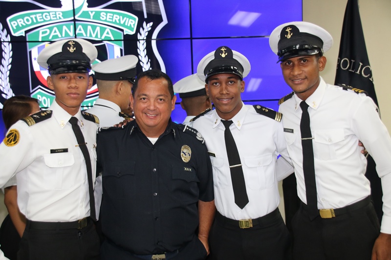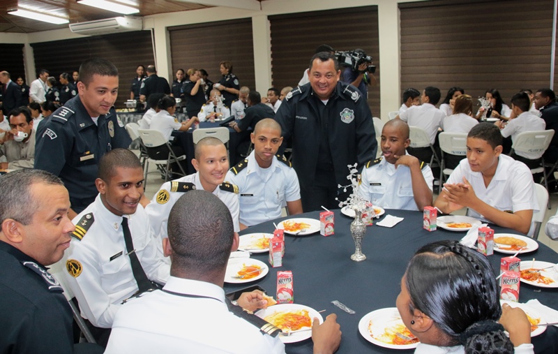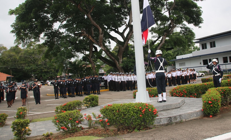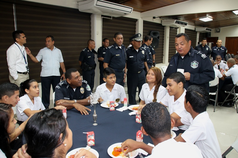 Los estudiantes del colegio Artes y Oficios Melchor Lasso de la Vega, fueron los invitados a rendirle honor a la Patria, durante el acto cívico en la sede de la Policía Nacional en el corregimiento de Ancón. Al unísono, los estudiantes y miembros de la primera institución de seguridad, saludaron el “Pabellón Nacional”, entonando las gloriosas notas del Himno Nacional, que nos invita a trabajar con esfuerzo para continuar edificando el futuro del país. Durante la ceremonia estuvo presente el Ministro de Seguridad Pública, Rodolfo Aguilera Franceschi, quien en sus palabras agradeció a los policías por el trabajo realizado en bien de la comunidad. Por su parte, el Director General de la Policía Nacional, Omar Ariel Pinzón Marín dijo que la presencia de estos jóvenes llena de mucha alegría a quienes conforman la entidad de seguridad. “Ellos son el relevo generacional y por tanto, nuestra institución está a la disposición para apoyarlos” dijo el Director General. Dijo que con esta iniciativa de invitar a estudiantes de diferentes colegios a participar del acto cívico, la Policía Nacional quiere incentivar y fortalecer en ellos, el amor por la Patria, principios, valores y a su vez, que conozcan a la institución policial. Por su parte, el director del Colegio Artes y Oficios, Juvenal Abrego manifestó sentirse complacido al ser tomados en cuenta por la Policía Nacional para participar en esta actividad cívica que contribuye a la formación de los estudiantes como ciudadanos. La sorpresa fue aún mayor para “Los Artesanos”, y es que su plantel formará parte de la liga intercolegial de fútbol que agrupará a los colegios públicos y será organizada por la Policía Nacional. Culminado el acto cívico, los estudiantes junto a los miembros del Directorio Nacional compartieron un desayuno y posteriormente realizaron un recorrido en las instalaciones de la sede policial. |